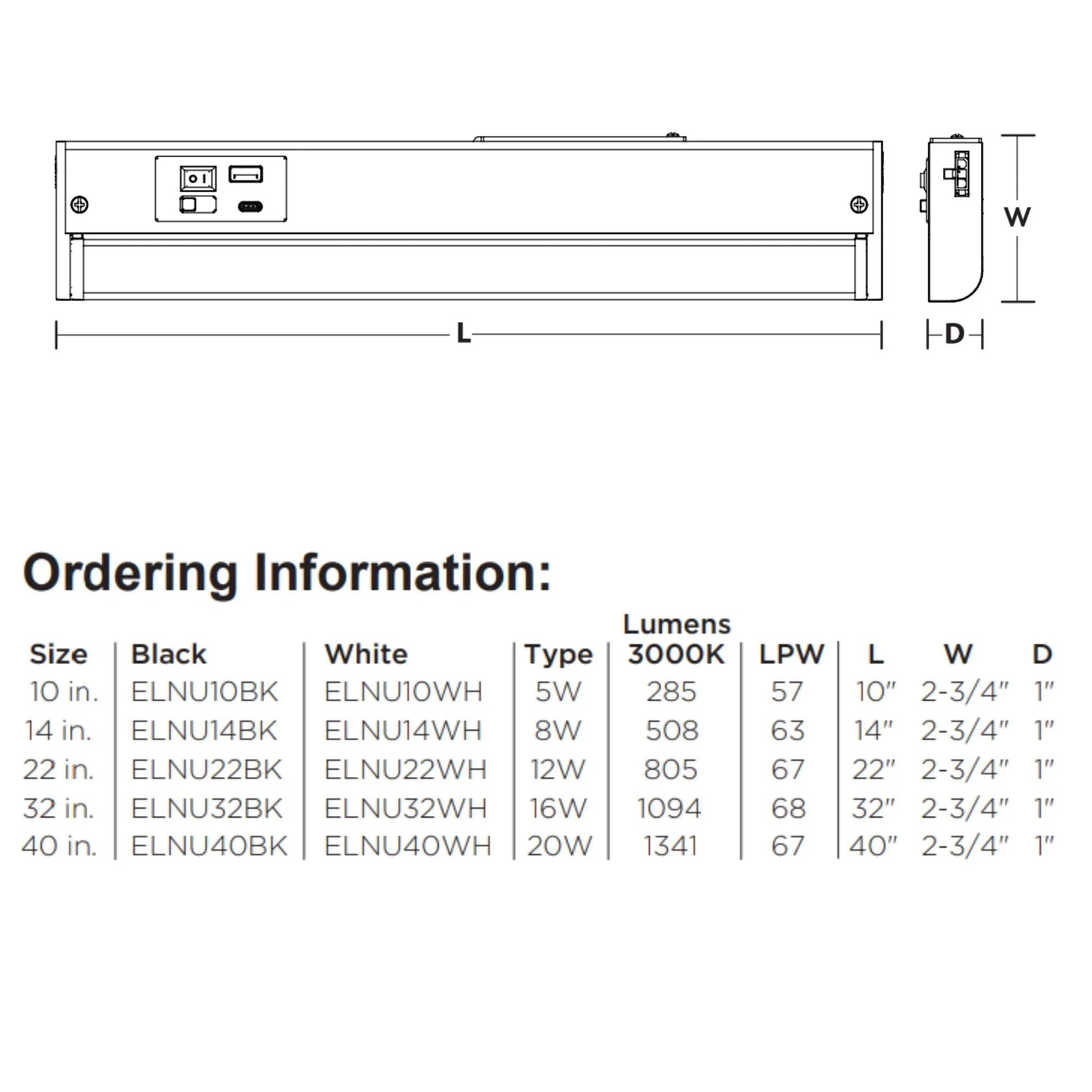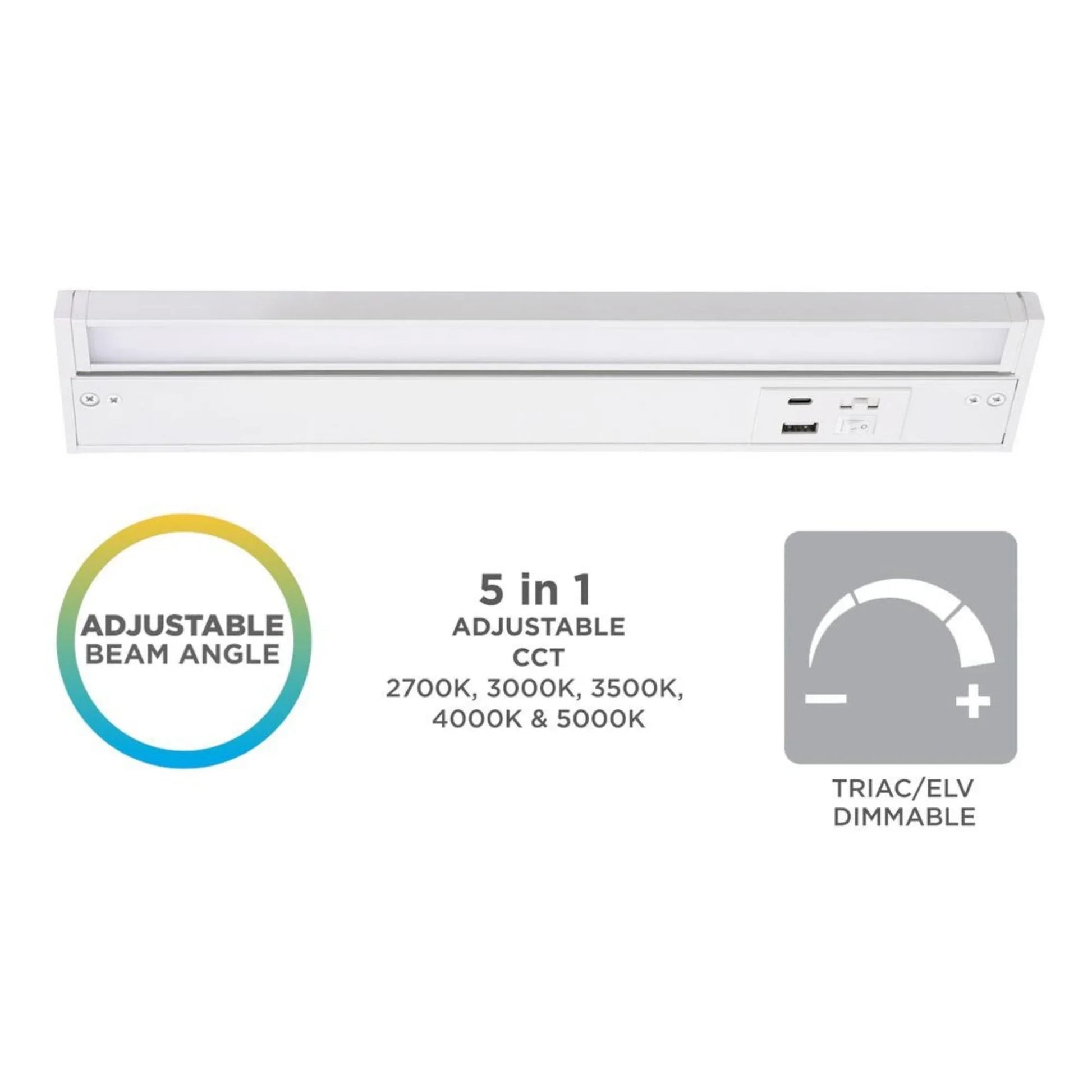 Elena 40-Inch LED Under Cabinet Light with USB Charging Ports, White