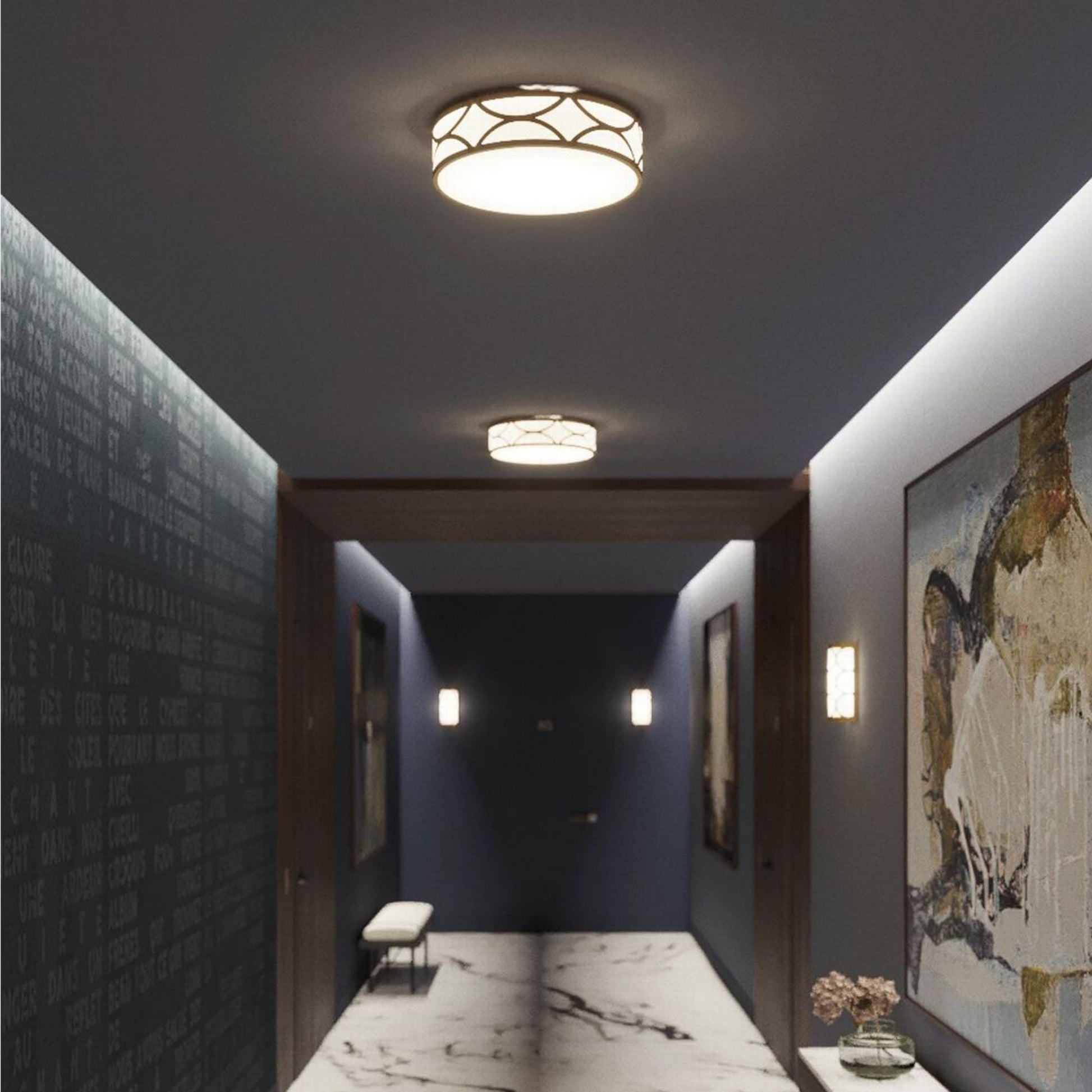 Lake 30" 4-Light Flush Mount, Painted Nickel Finish