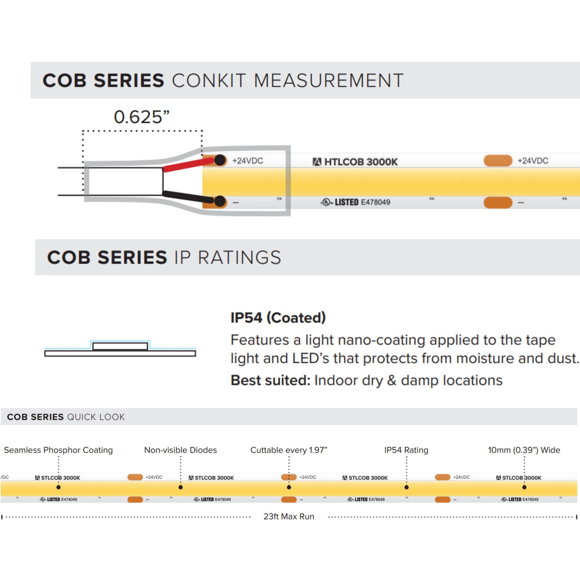 - 24V Low Voltage: Safe, efficient operation at 2.19W per foot with compatible 24V LED drivers