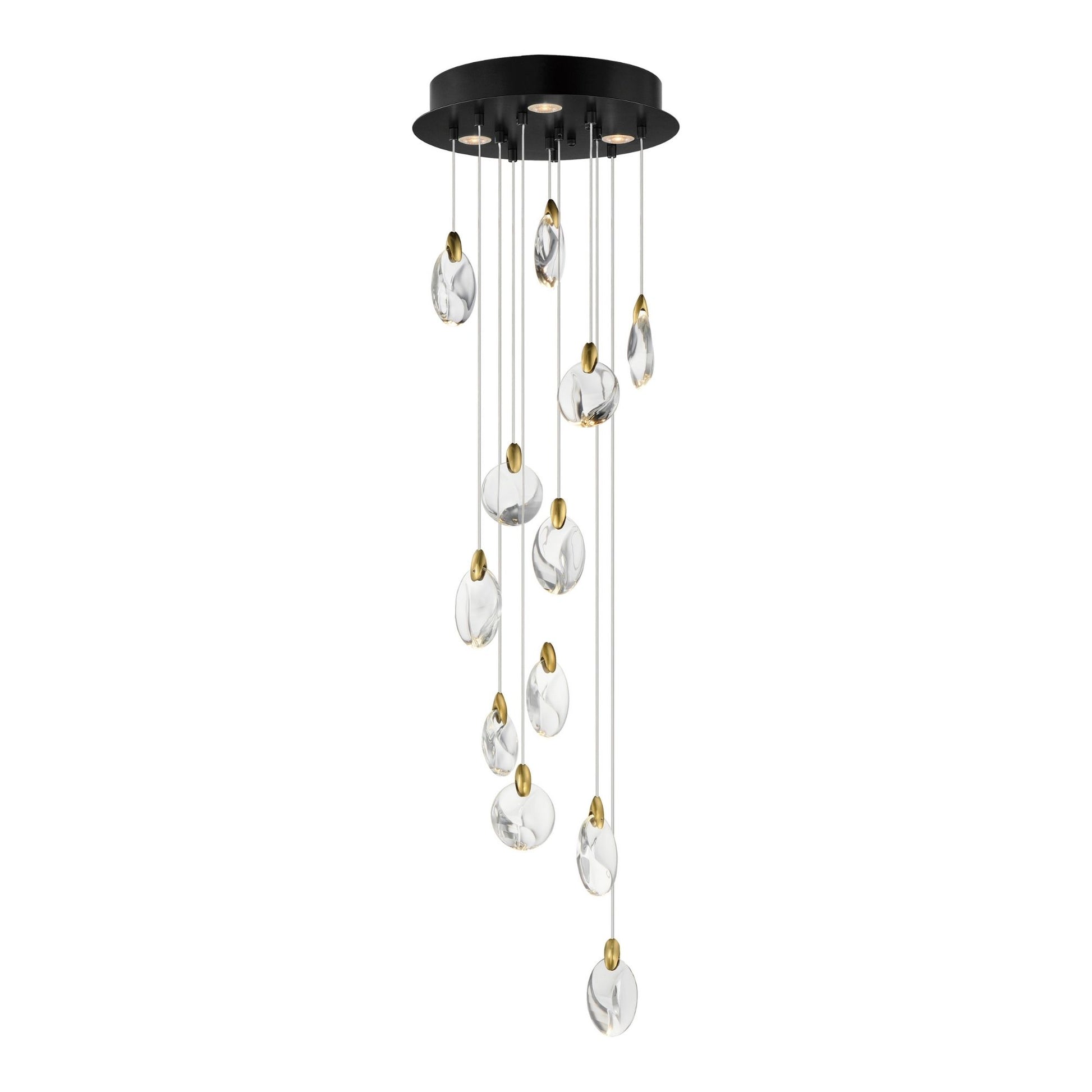 Pebble 16" LED Pendant, Black & Polished Gold Finish