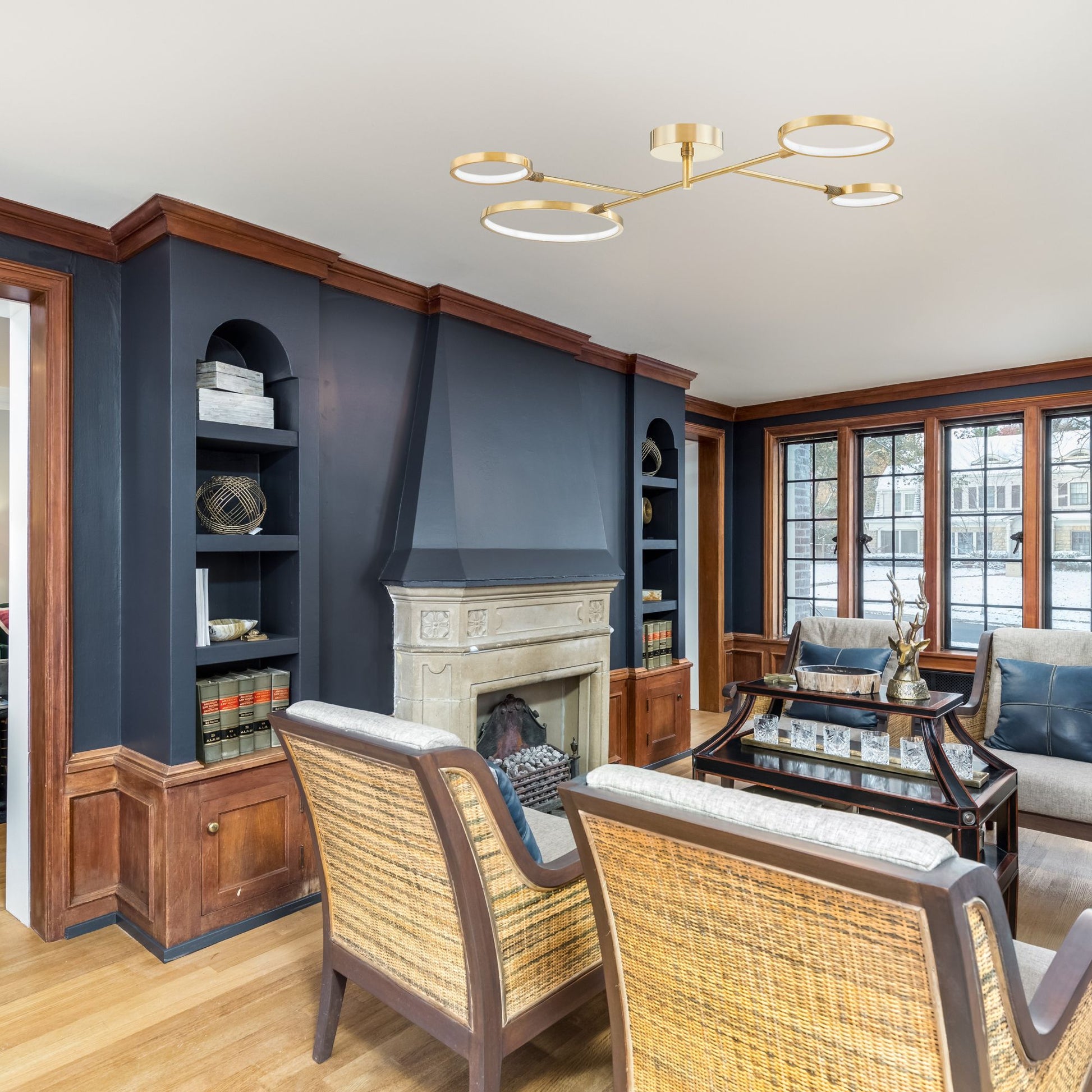 Saturn 43" LED Semi Flush Mount, Aged Brass Finish