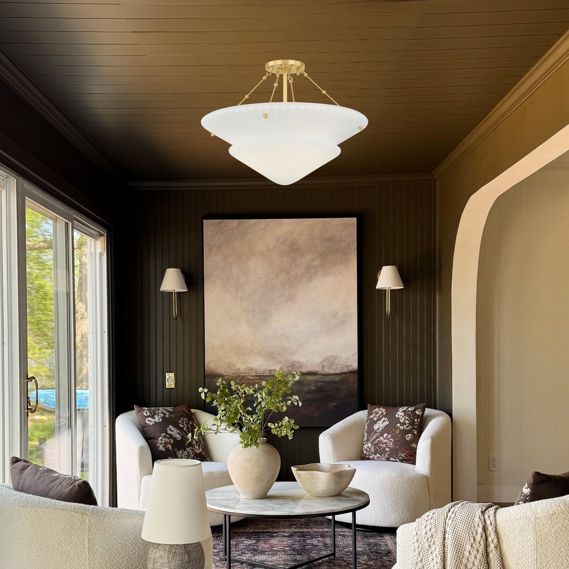 Loburn 20" 3-Light Semi Flush Mount, Aged Brass Finish