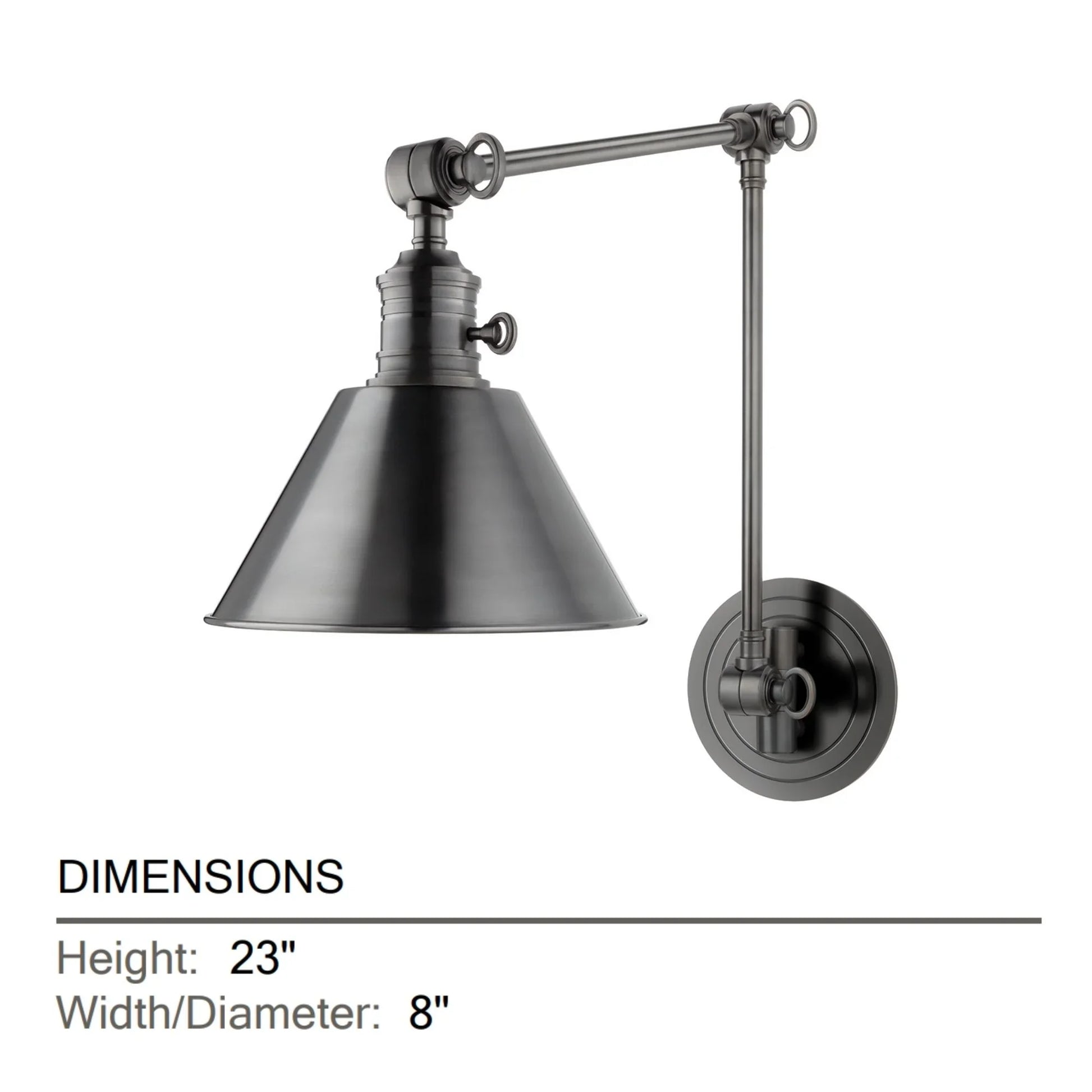 Garden City's genius lies in its flexible arm that allows you to direct light exactly where you need it. Perfect for bedside reading, task lighting in home offices, or creating focused illumination in hallways and living spaces. The articulating arm provides exceptional range of motion, while the 23" cone shade delivers powerful, directional light that's both functional and atmospheric. This larger scale makes a commanding statement while maintaining the collection's signature industrial elegance.