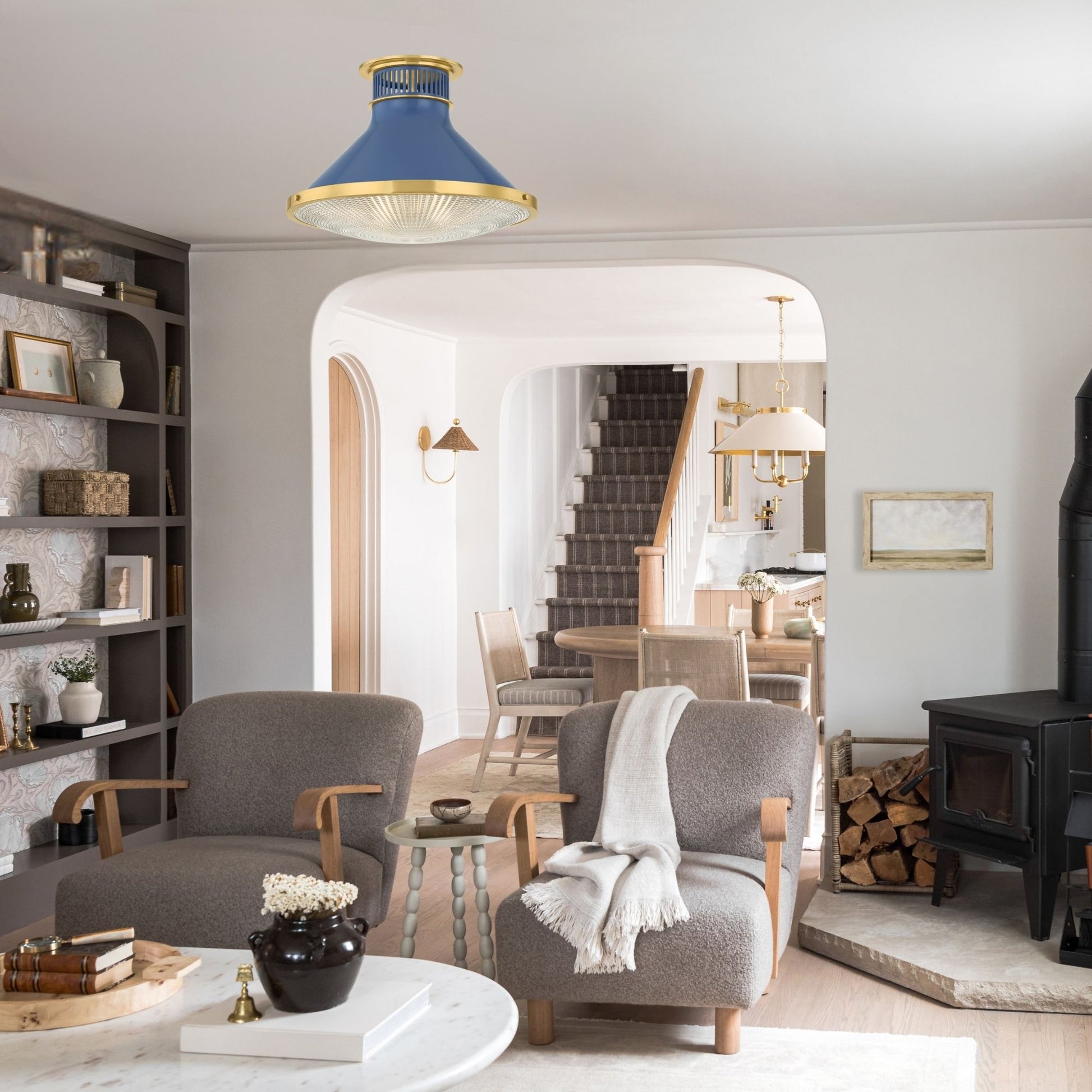 Highclere 18" Flush Mount, Aged Brass/Soft French Blue Finish