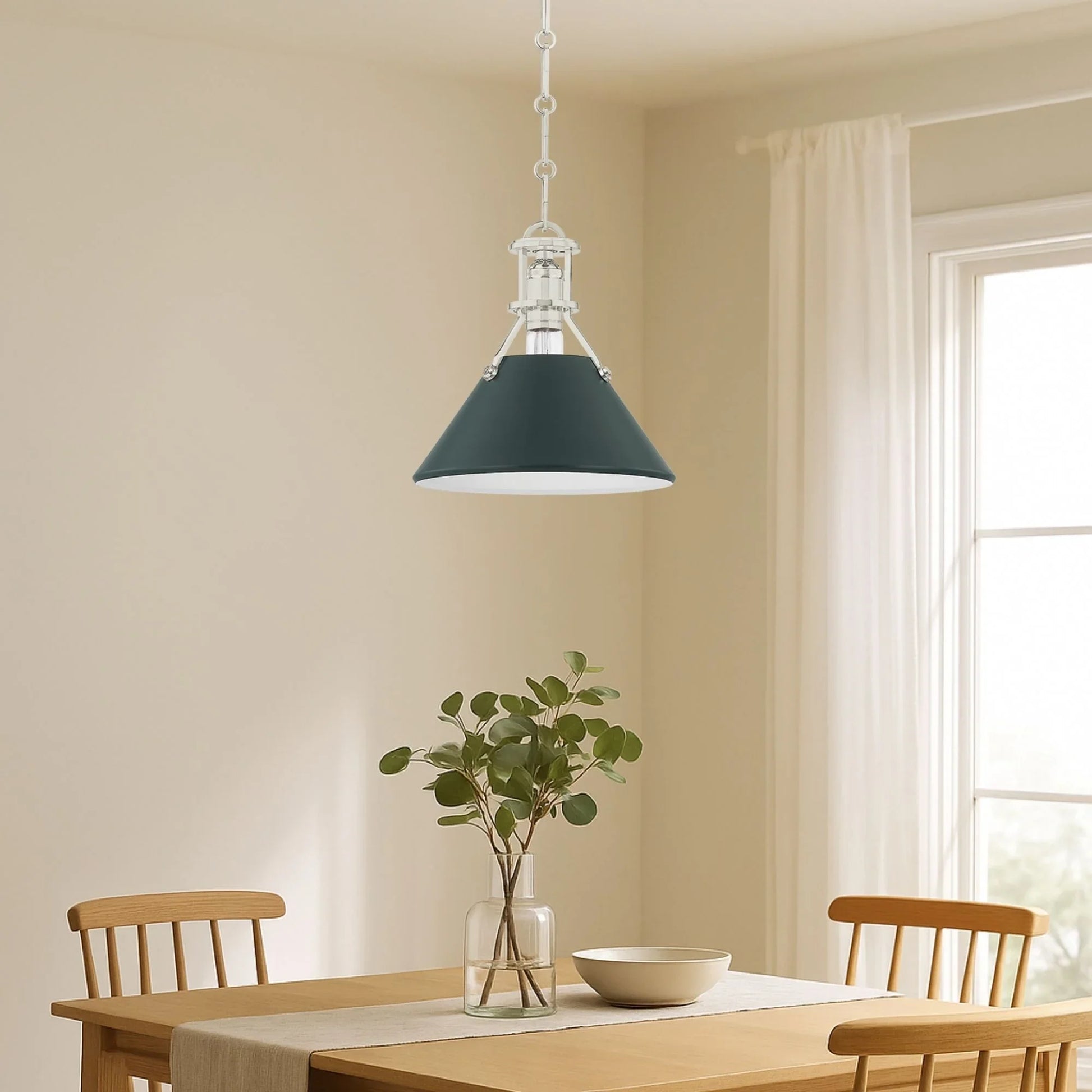 Painted No. 2 10" Pendant, Polished Nickel/Soft Studio Green Finish