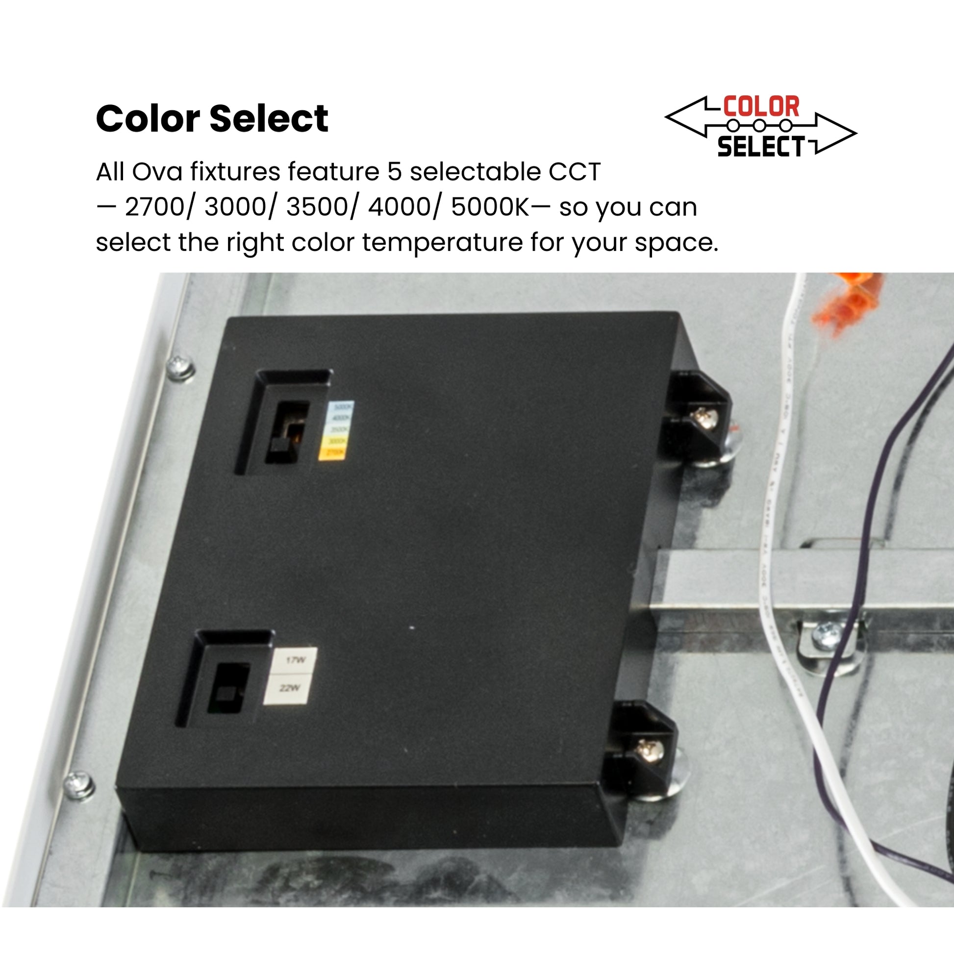 Switch between 2700K, 3000K, 3500K, 4000K, and 5000K to match your space requirements. The integrated Keystone Power Select technology lets you adjust wattage between 17W and 22W for optimal energy management.