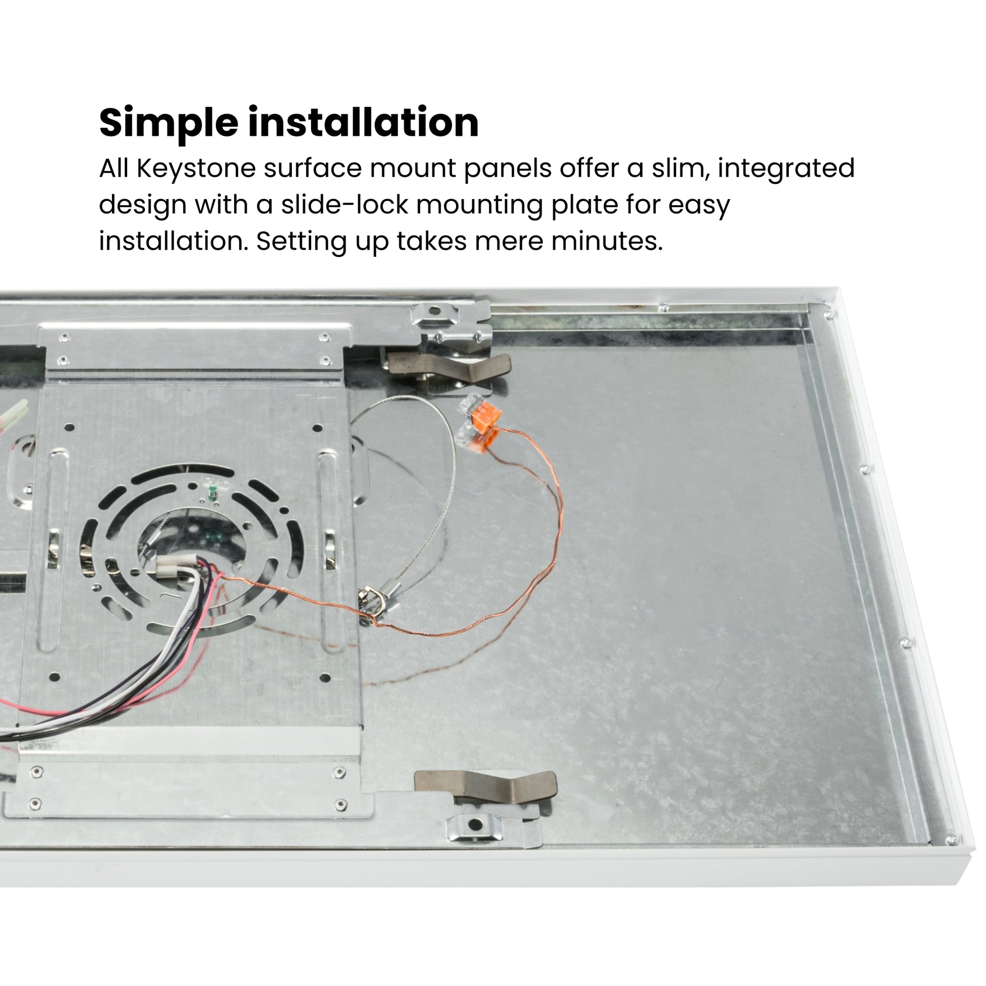 The slide-lock mounting plate simplifies retrofit projects and new construction installations. Ideal for conference rooms, corridors, reception areas, and patient rooms where uniform illumination matters. Available in multiple sizes and wattages to suit various ceiling configurations.