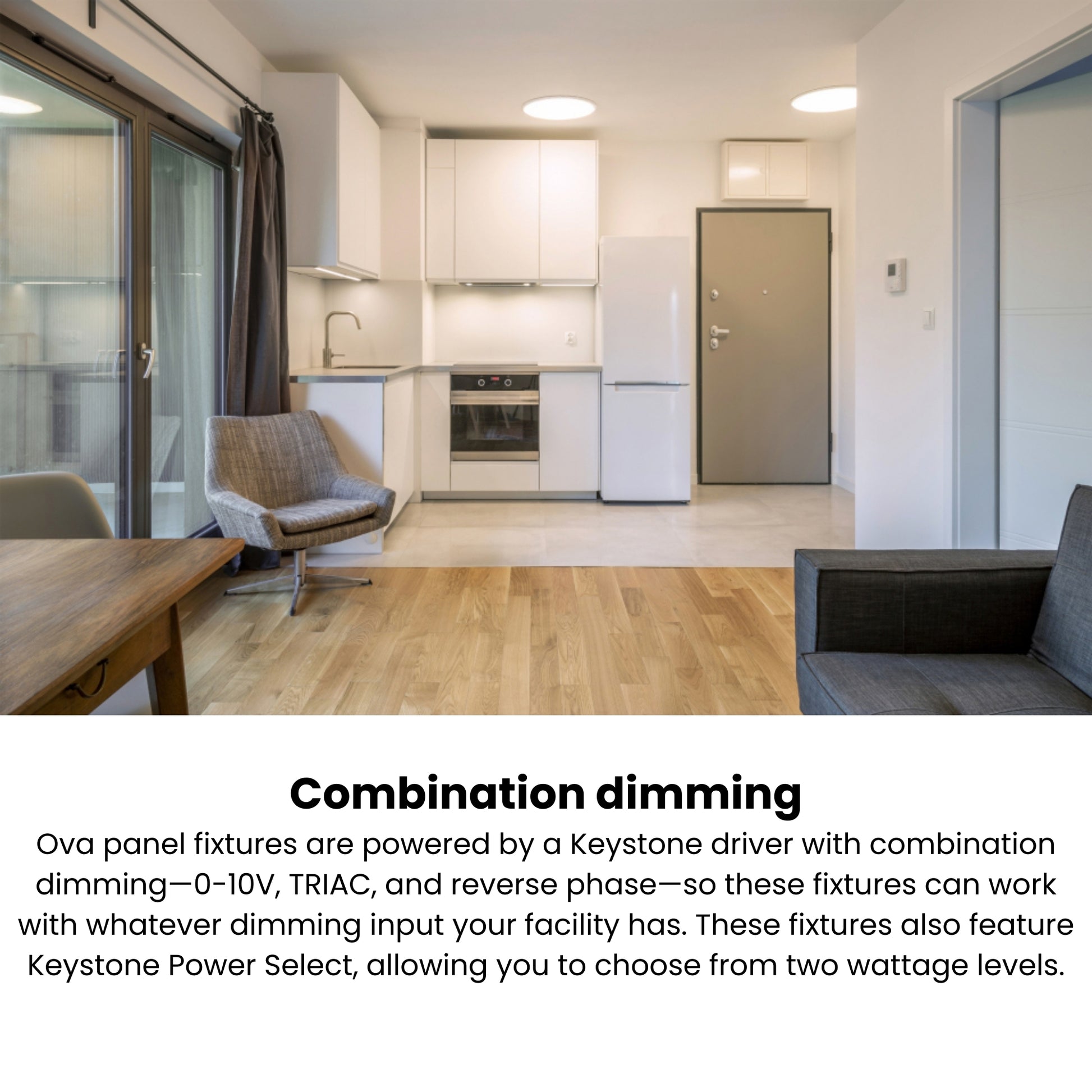 - Tri-mode dimming compatible (0-10V/TRIAC/ELV) down to 10%