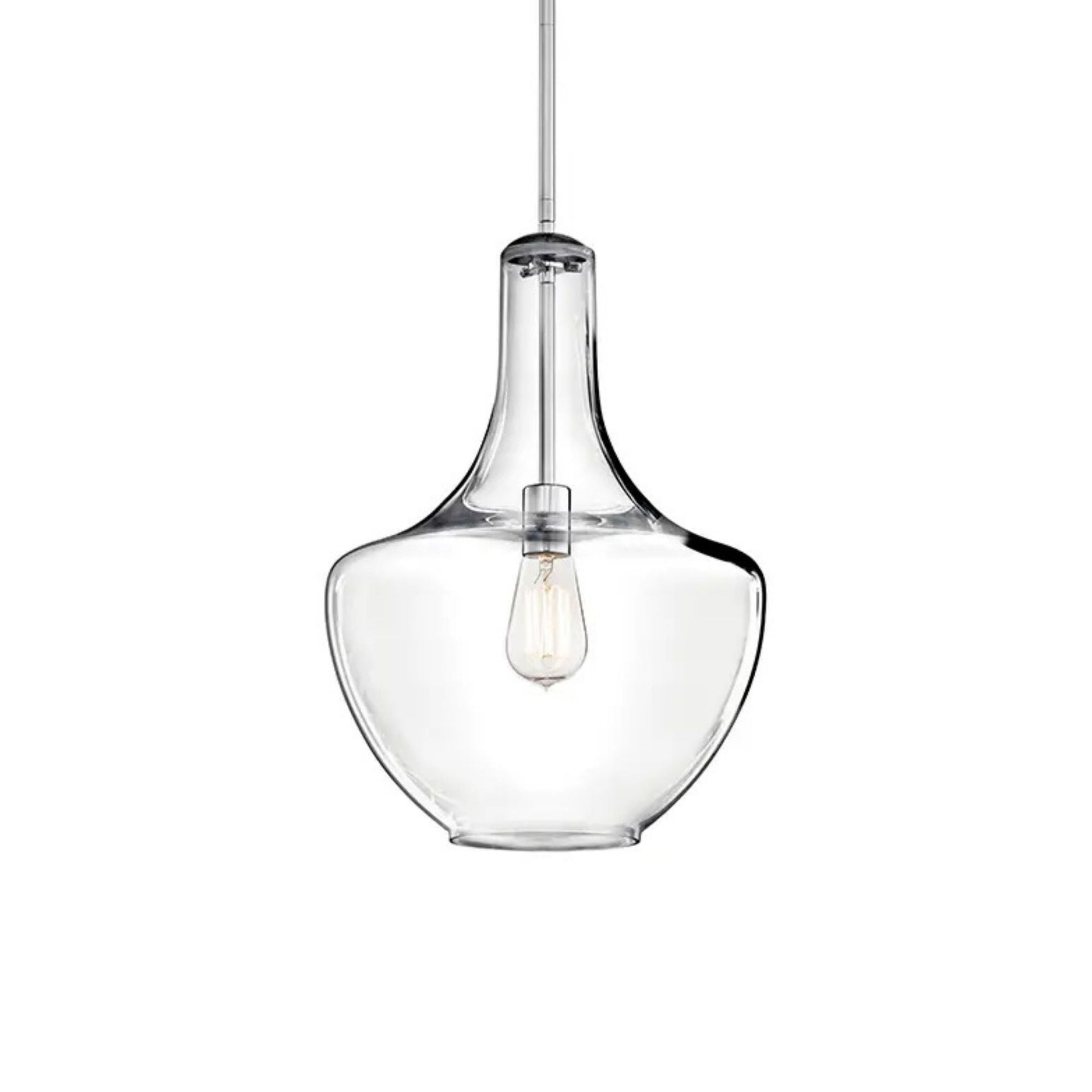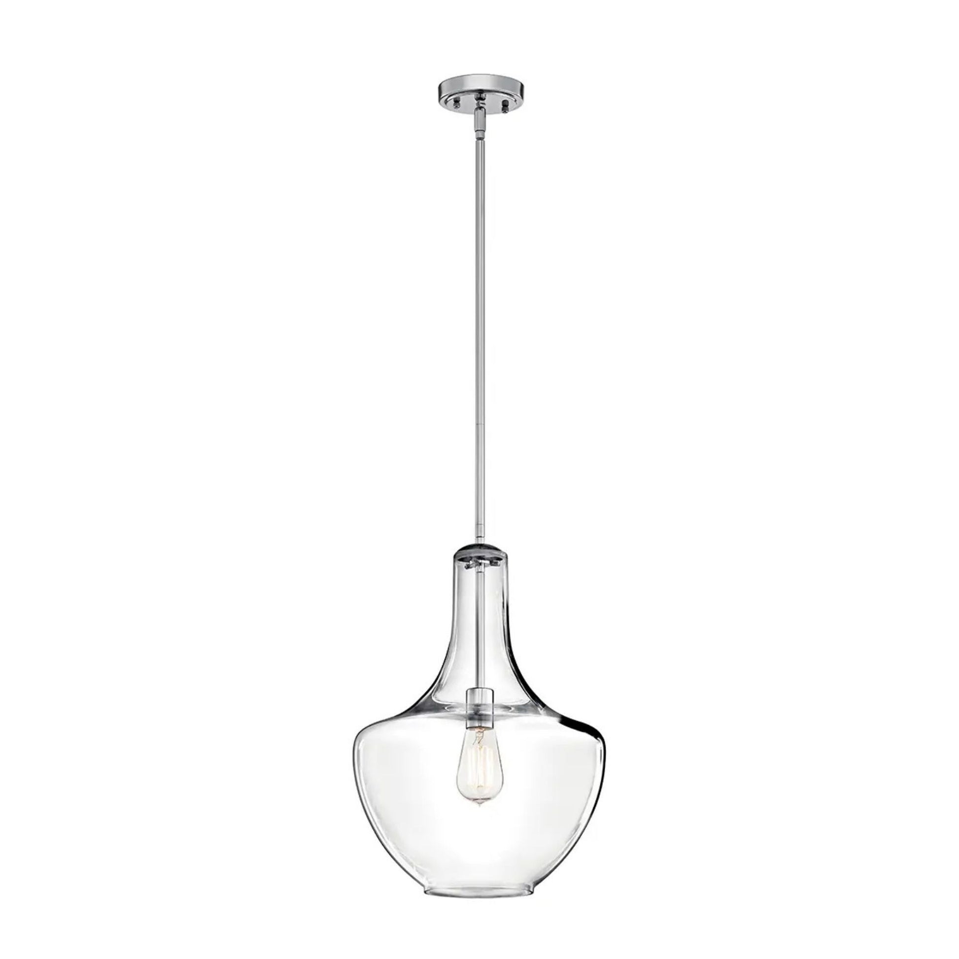 Everly 14" Bell Pendant, Chrome Finish, Clear Glass