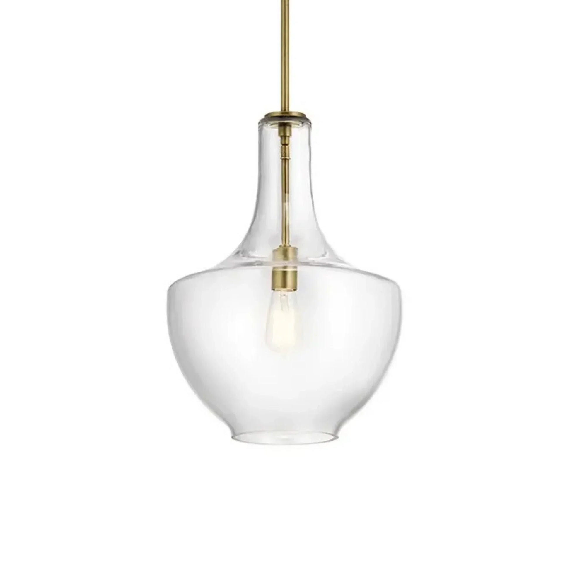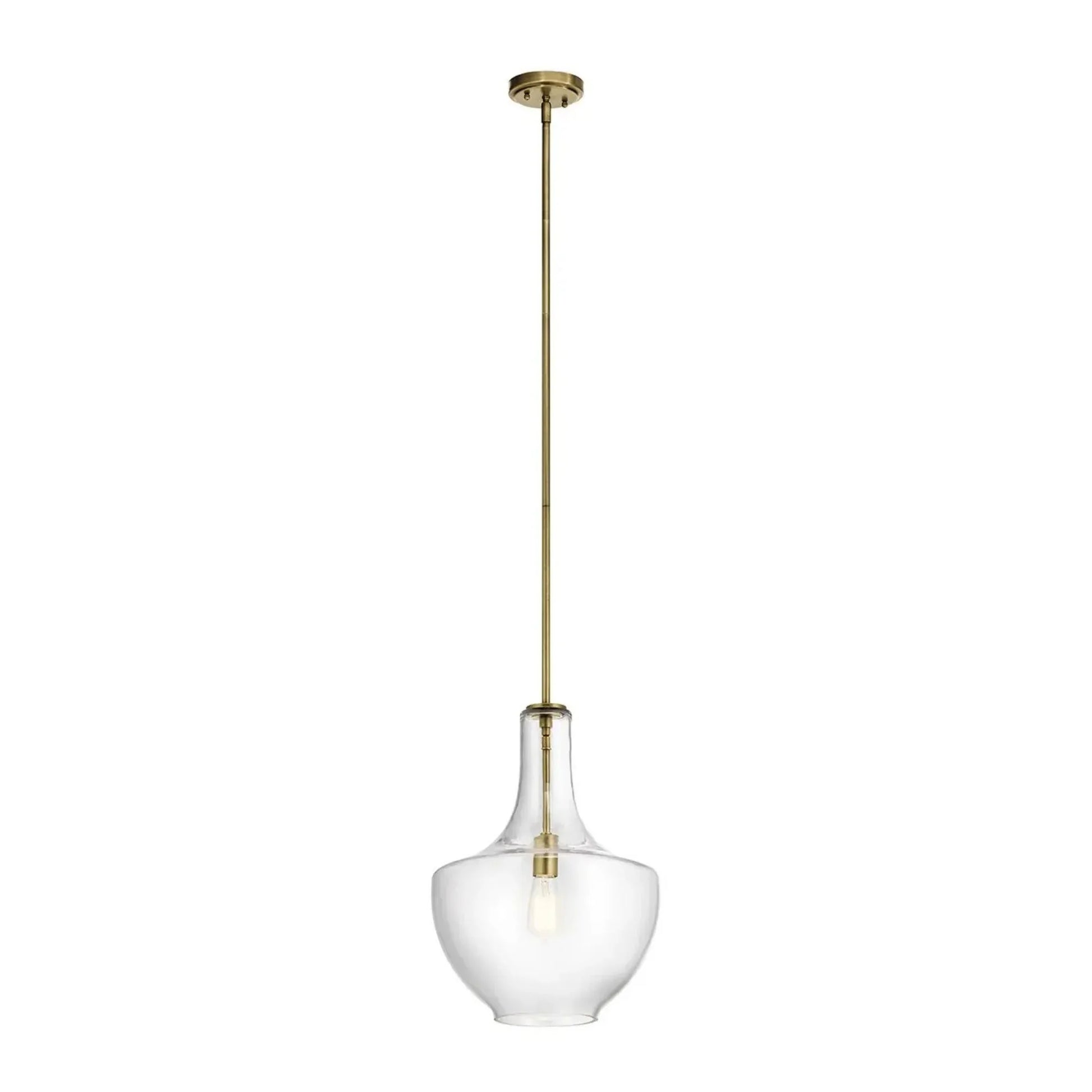 Everly 14" Bell Pendant, Natural Brass Finish, Clear Glass
