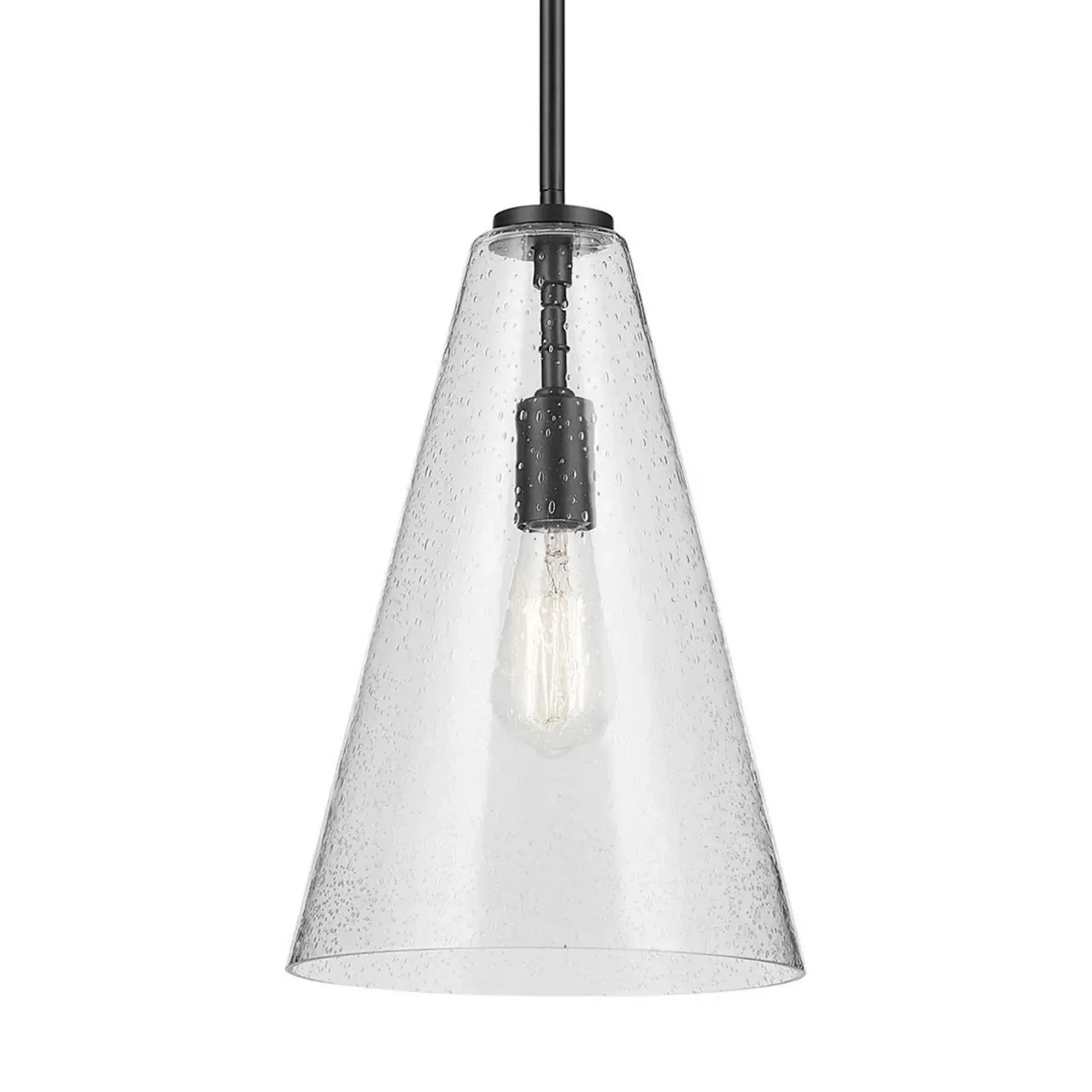 Everly 10" Cone Pendant, Black Finish, Clear Seeded Glass