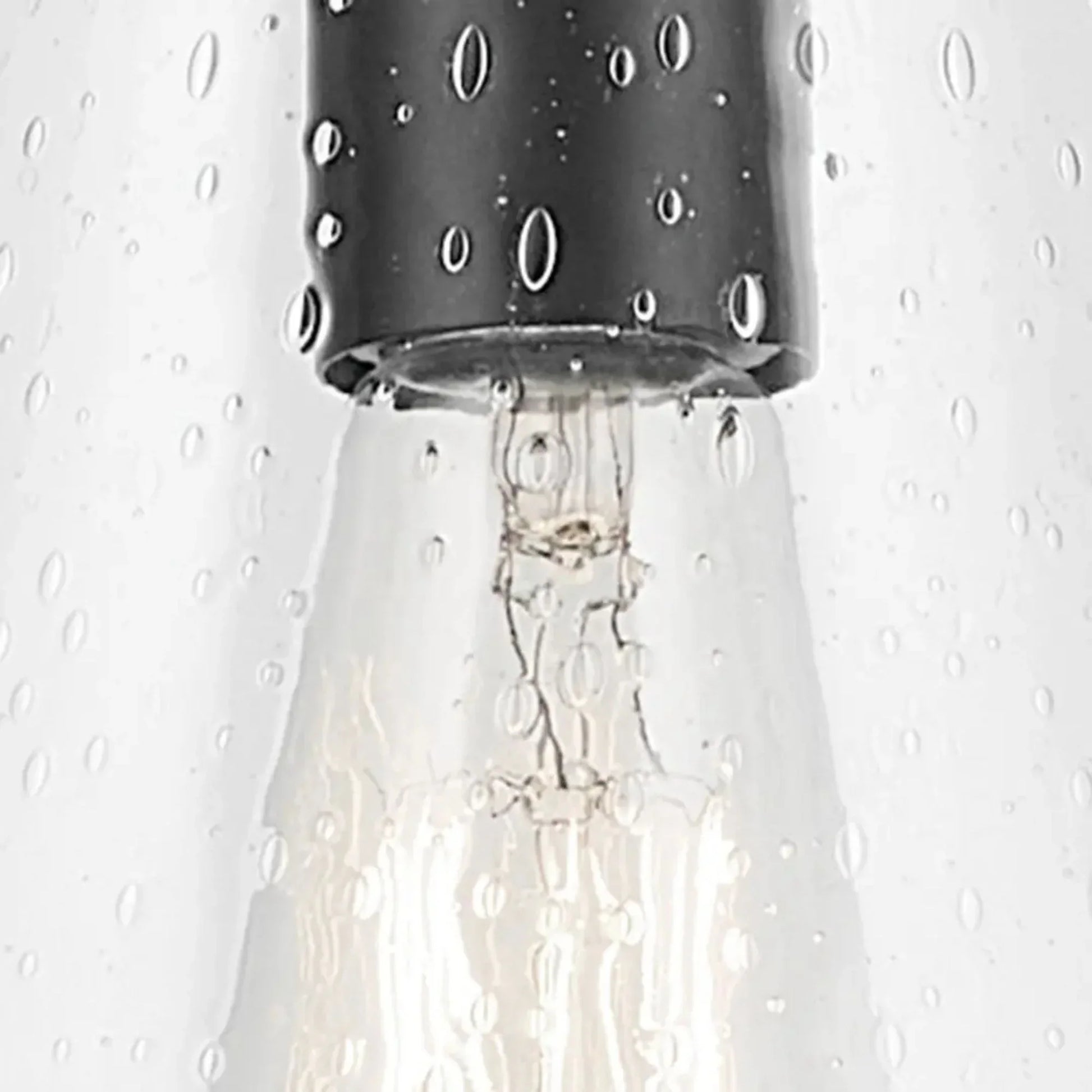 - Conical form with clear seeded glass creates a warm, ambient glow