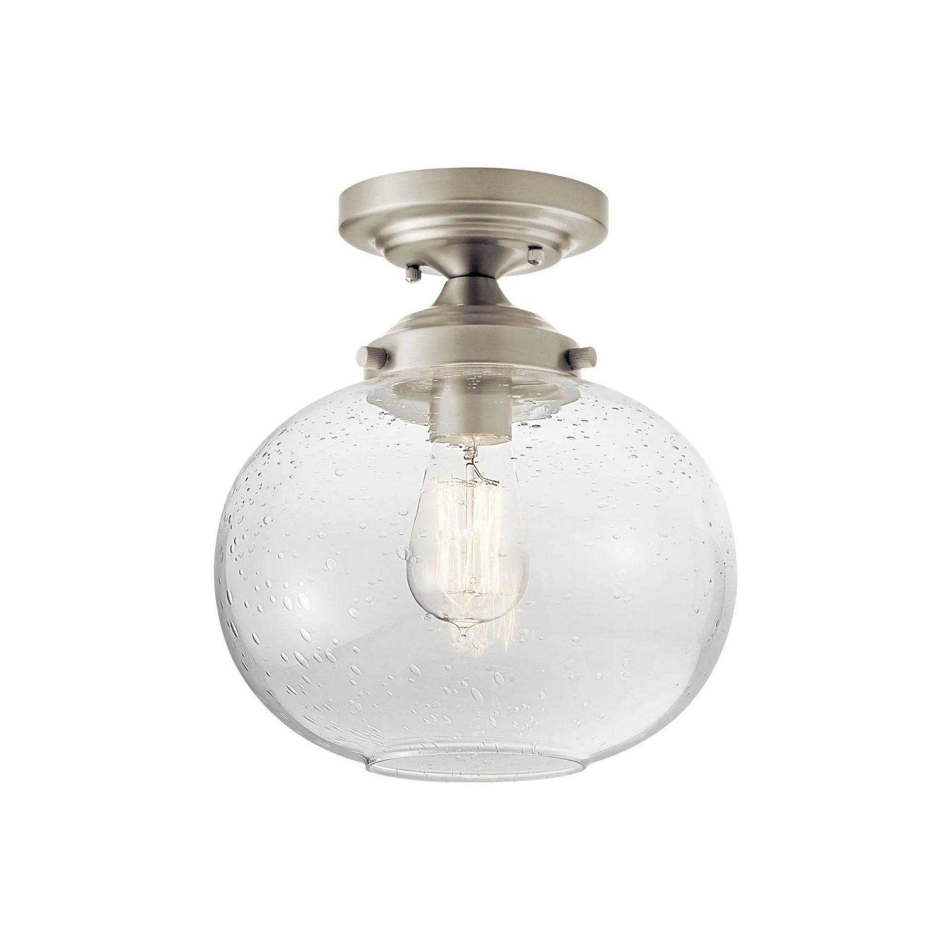 - Clear seeded glass shade provides beautiful, ambient lighting