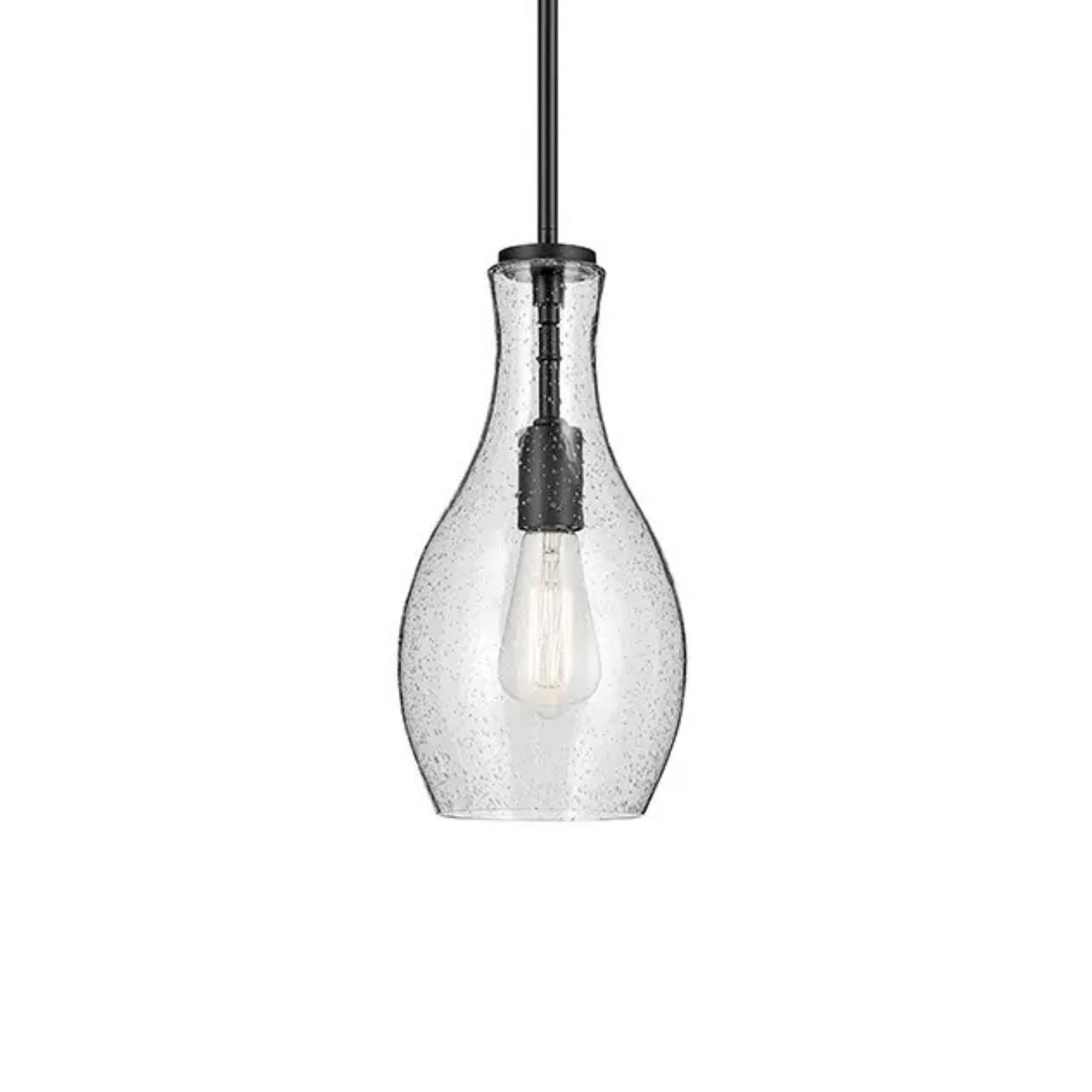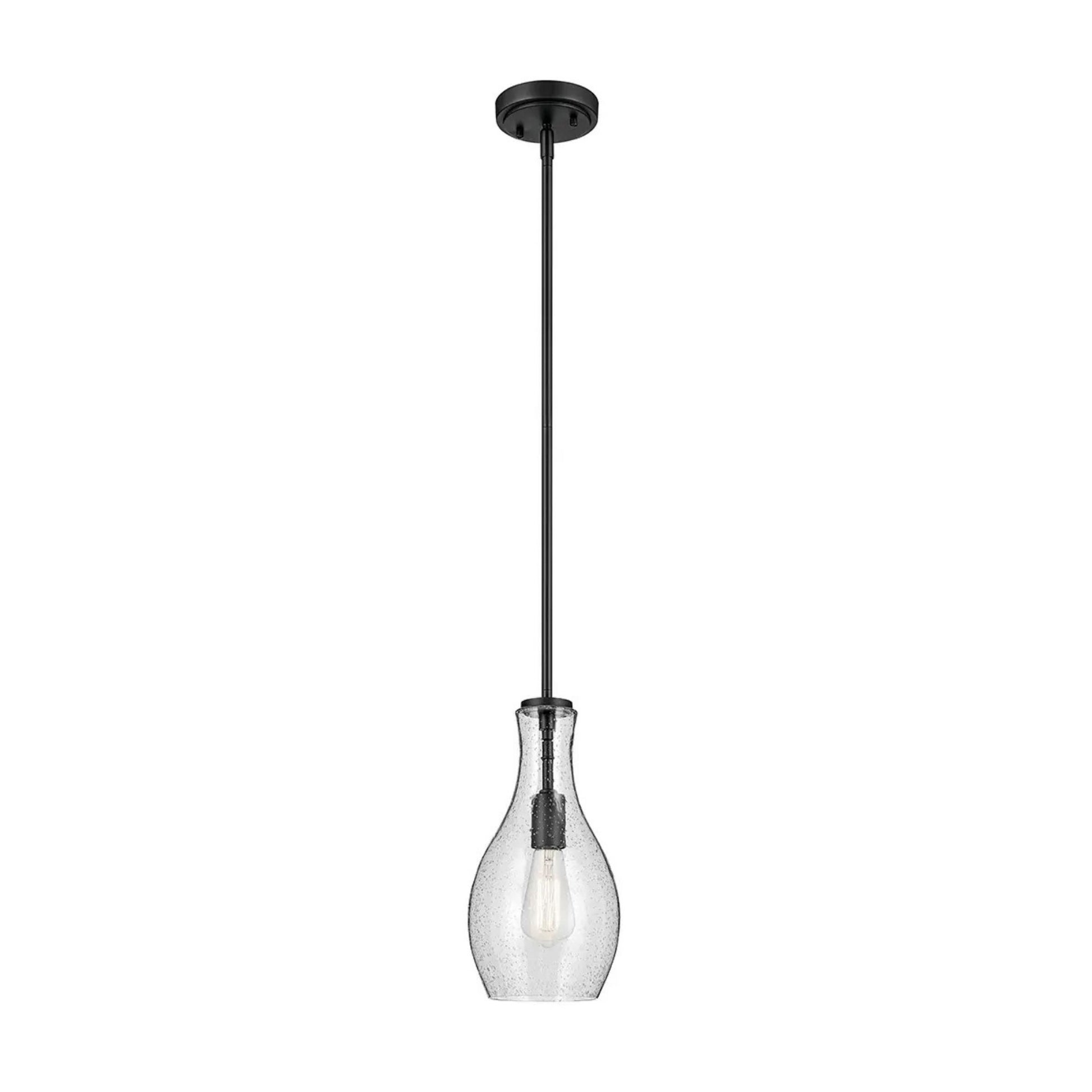 Everly 7" Pendant, Black Finish, Clear Seeded Glass