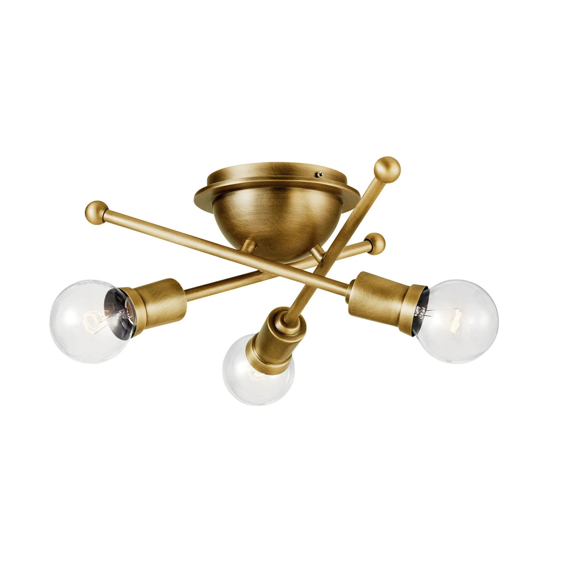 Armstrong 15" 3-Light Flush Mount, Natural Brass Finish