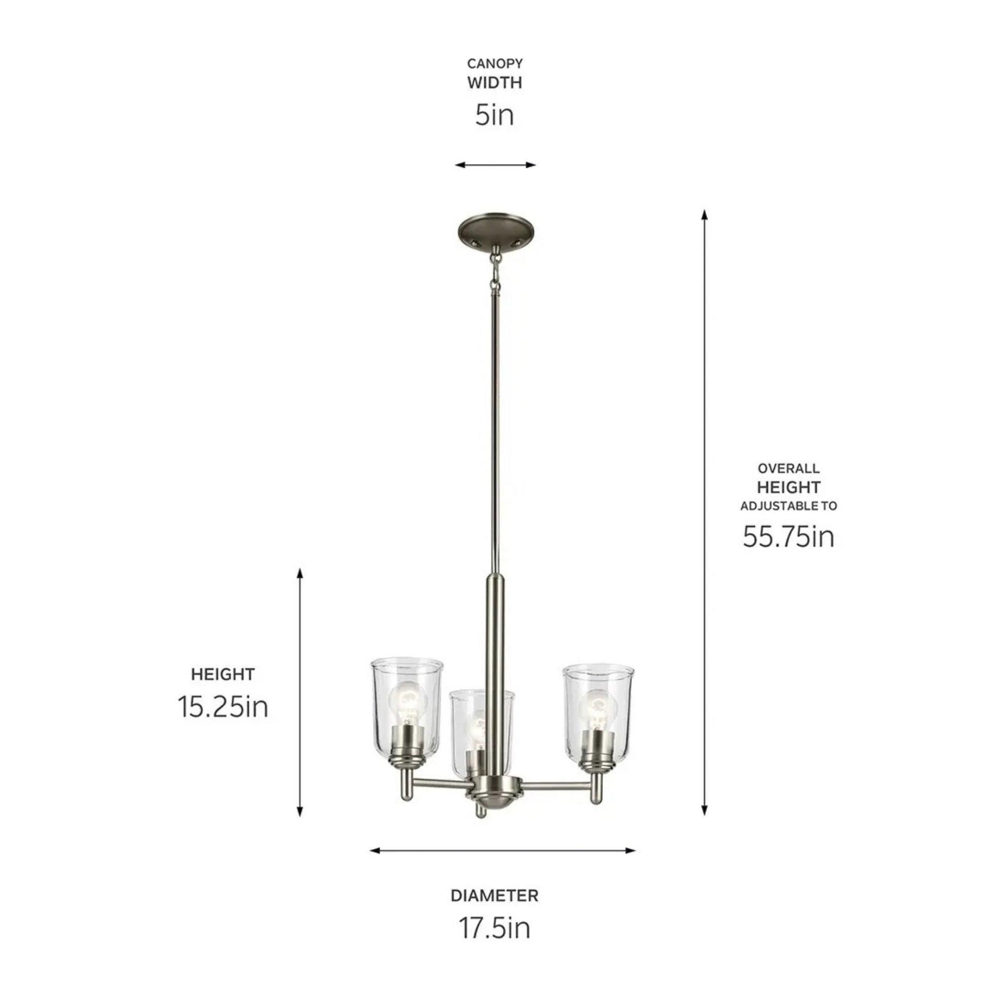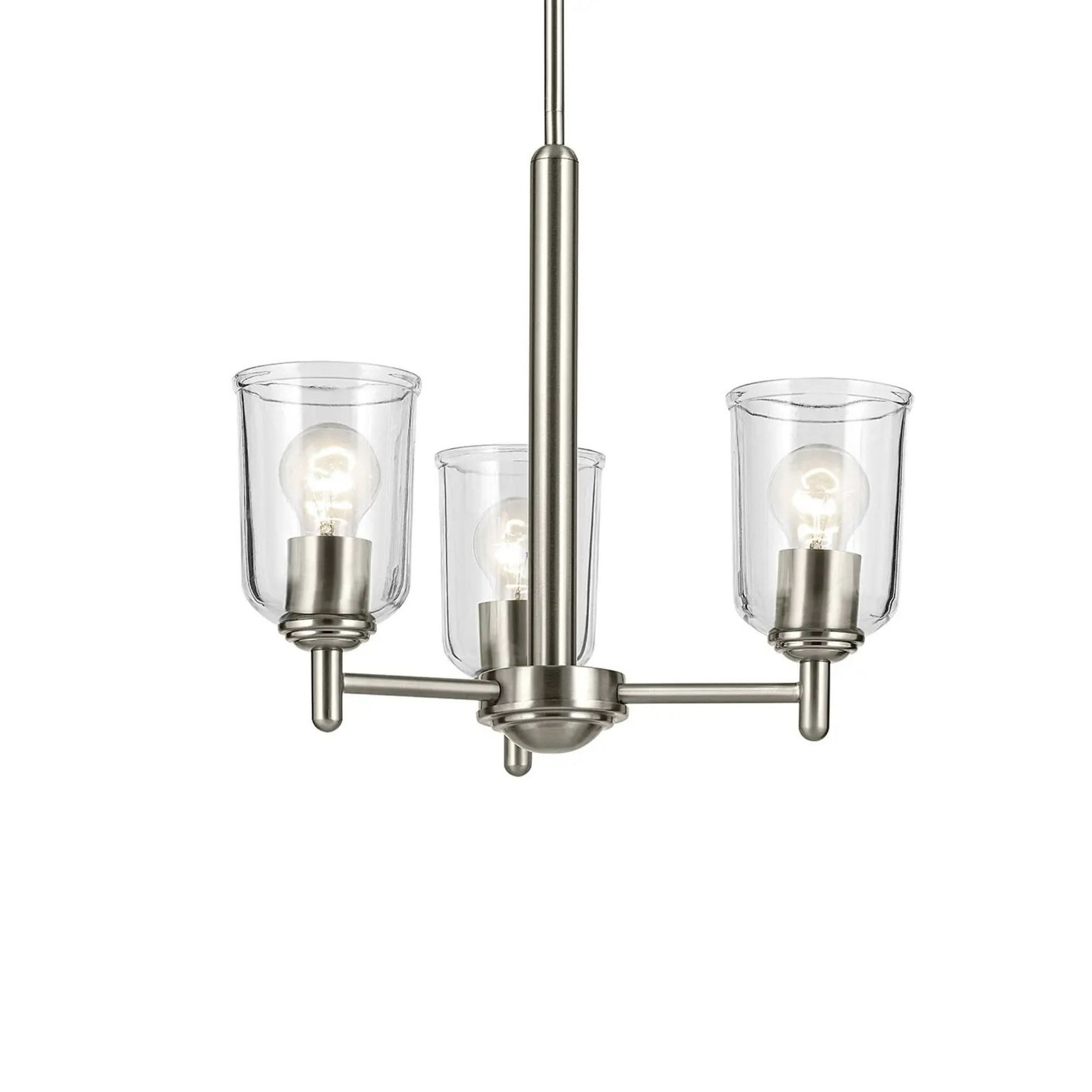 Shailene 18" 3-Light Mini Chandelier, Brushed Nickel Finish, Clear Glass