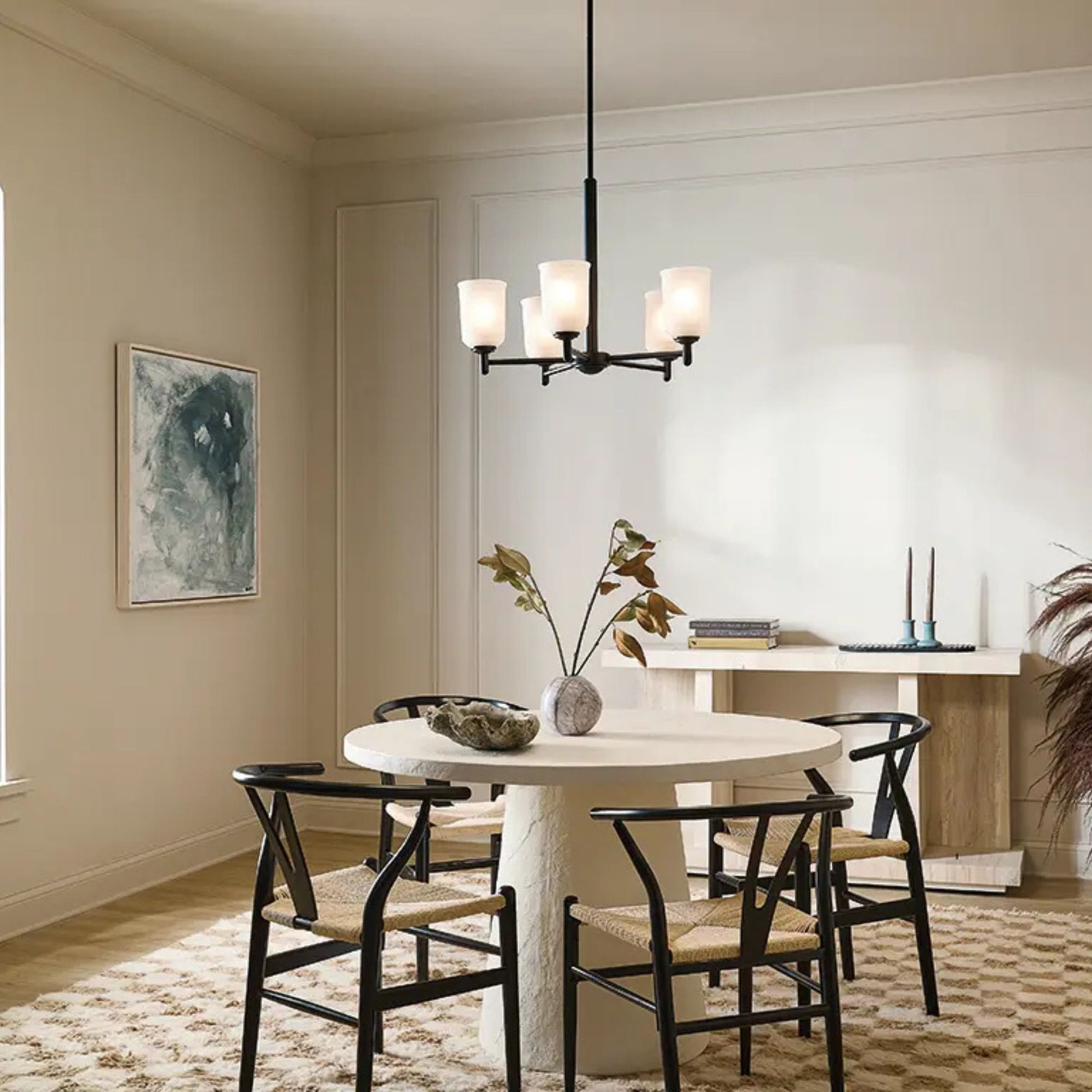 - Satin etched glass shades diffuse light beautifully, filling your room with a warm, inviting glow.
