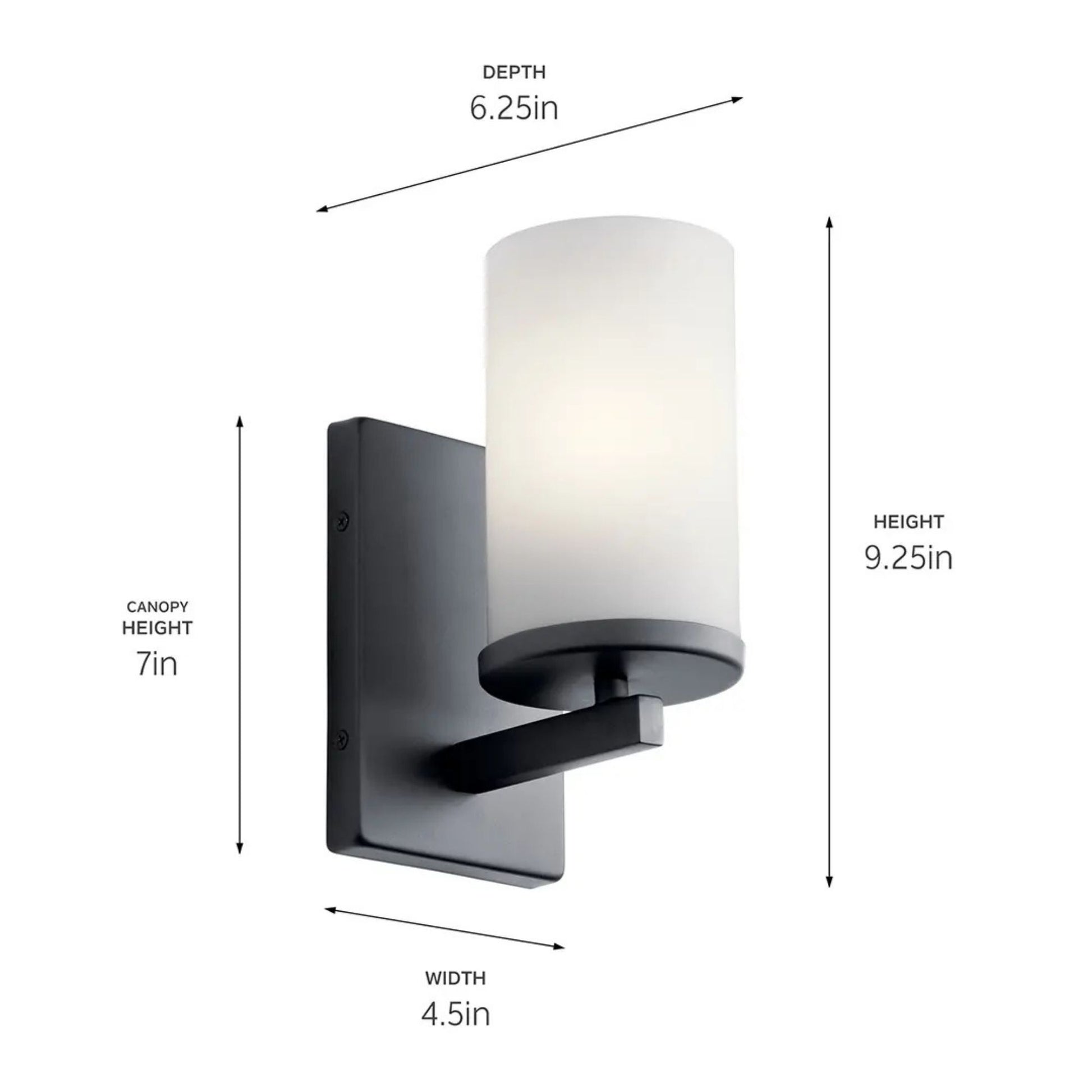 Crosby 5" Wall Sconce, Black Finish, Opal Glass