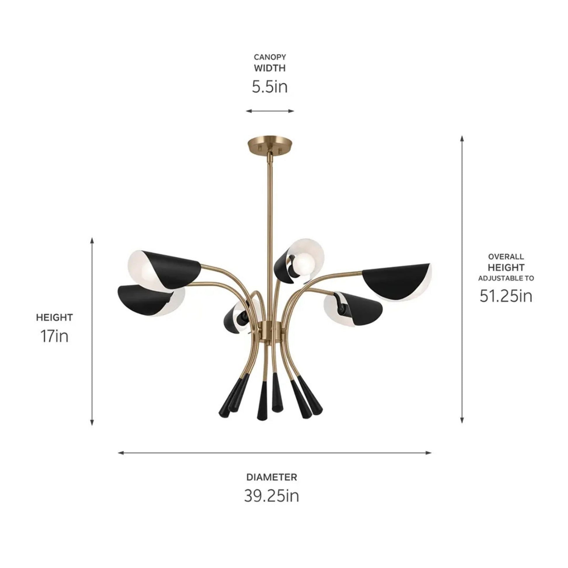 Arcus 39" 6-Light Chandelier, Champagne Bronze & Black Finish