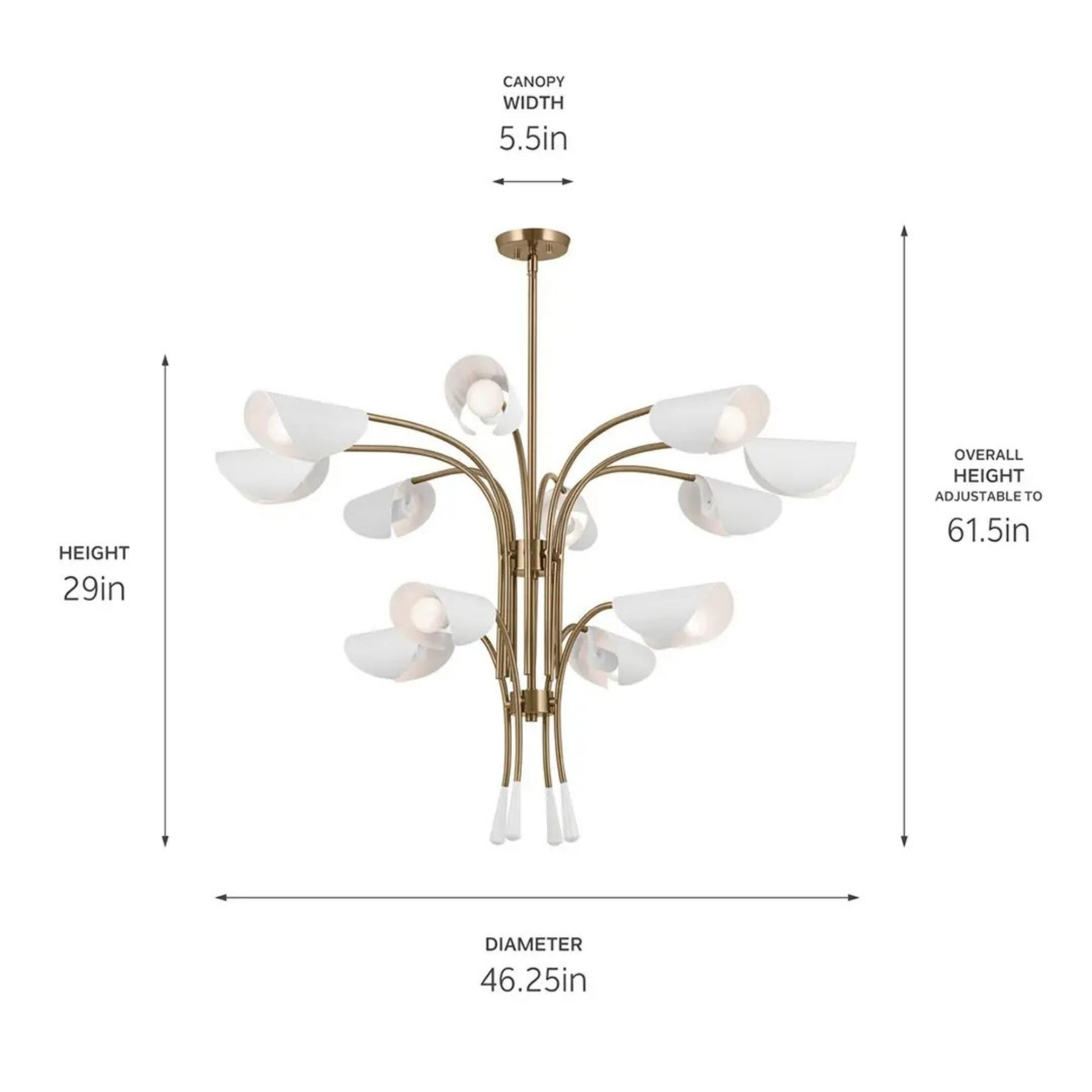 Arcus 46" 12-Light Chandelier, Champagne Bronze & White Finish