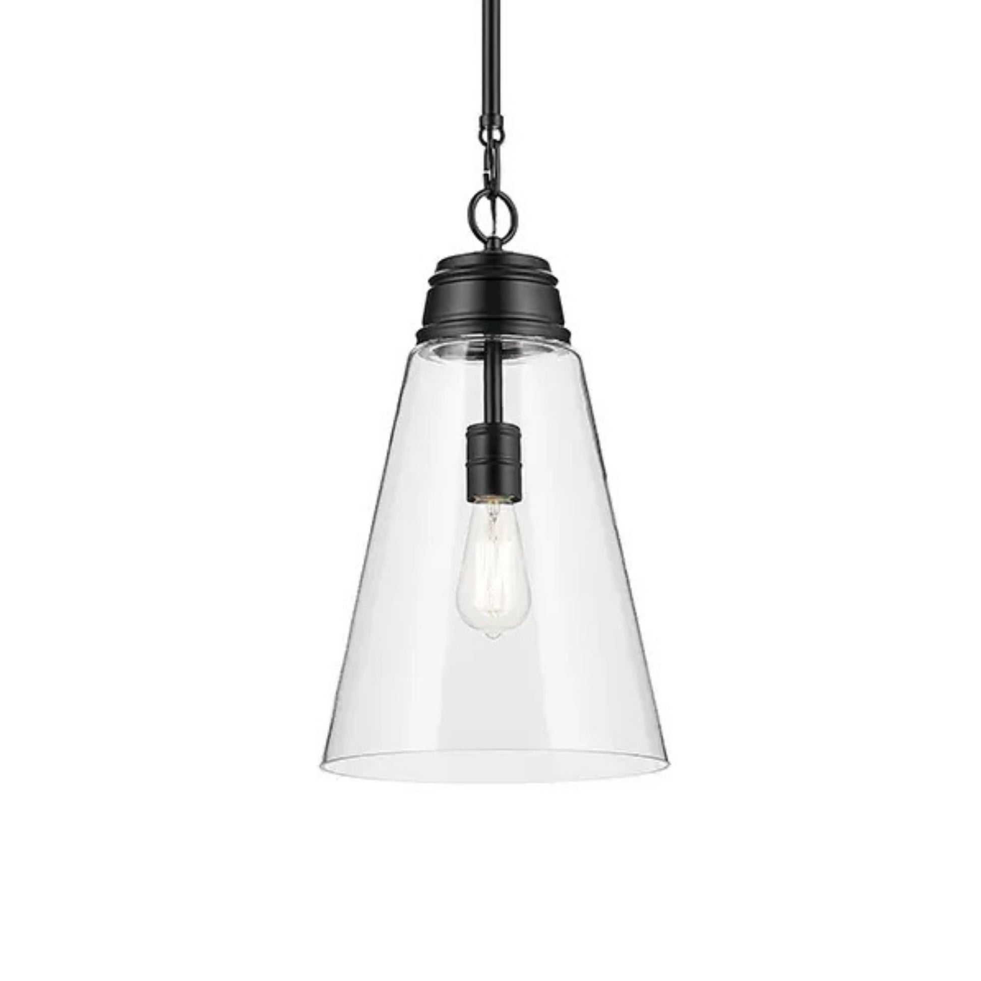 Marsailli 12" Pendant, Black Finish, Clear Glass