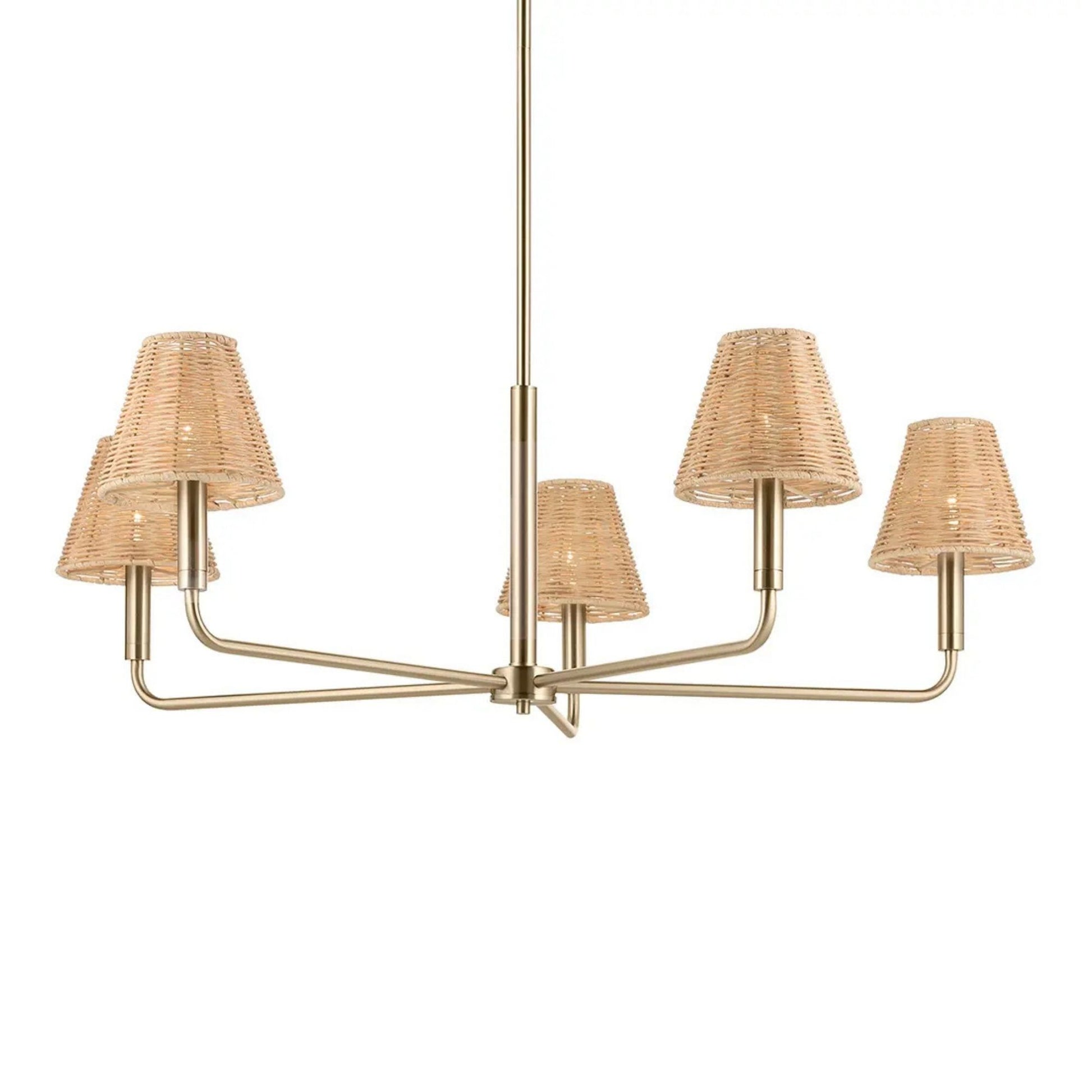 Kichler Bekah Chandelier — Champagne Bronze & Rattan Cone Shades