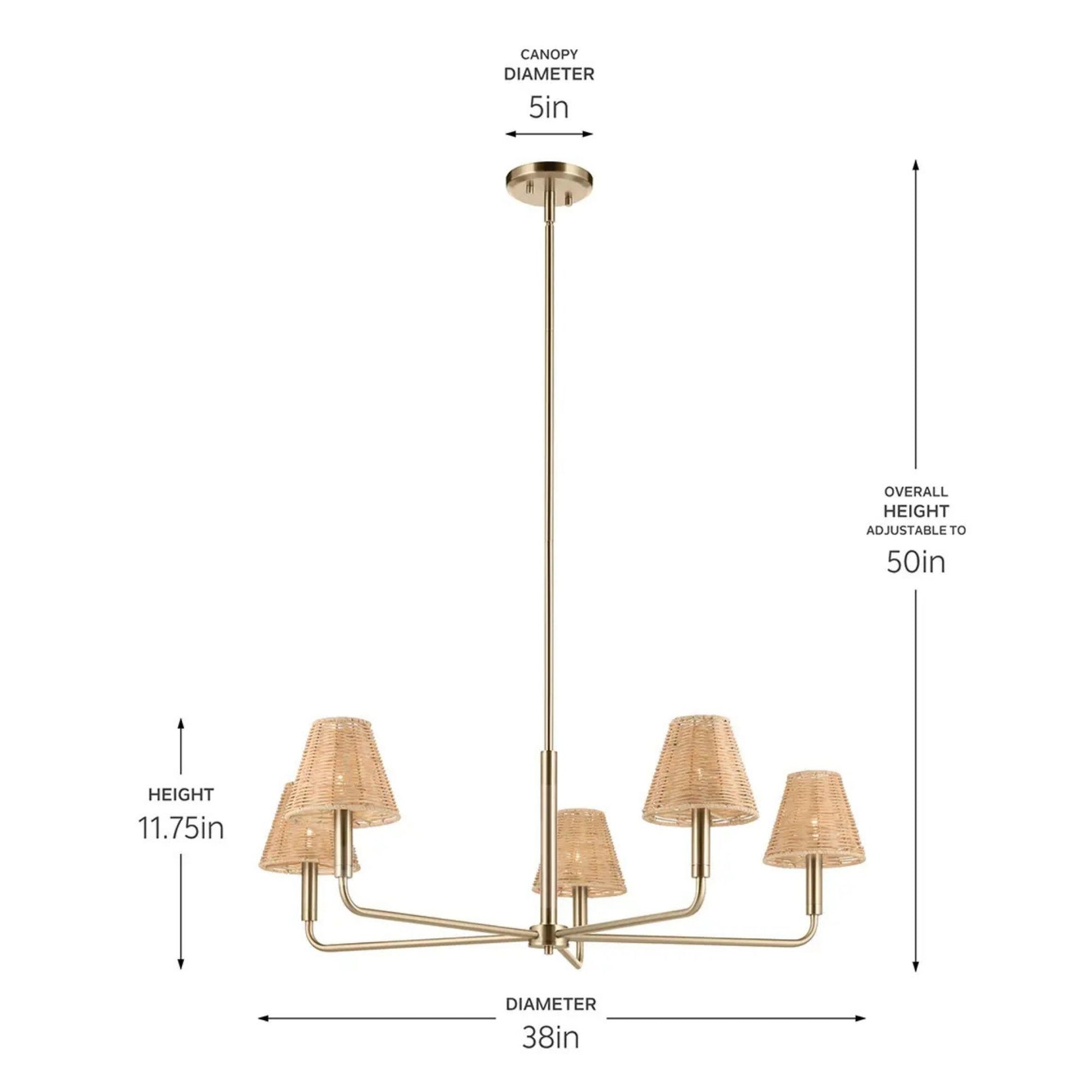 Kichler Bekah 38 in. 5-Light Chandelier, Champagne Bronze with Rattan Cone Shades