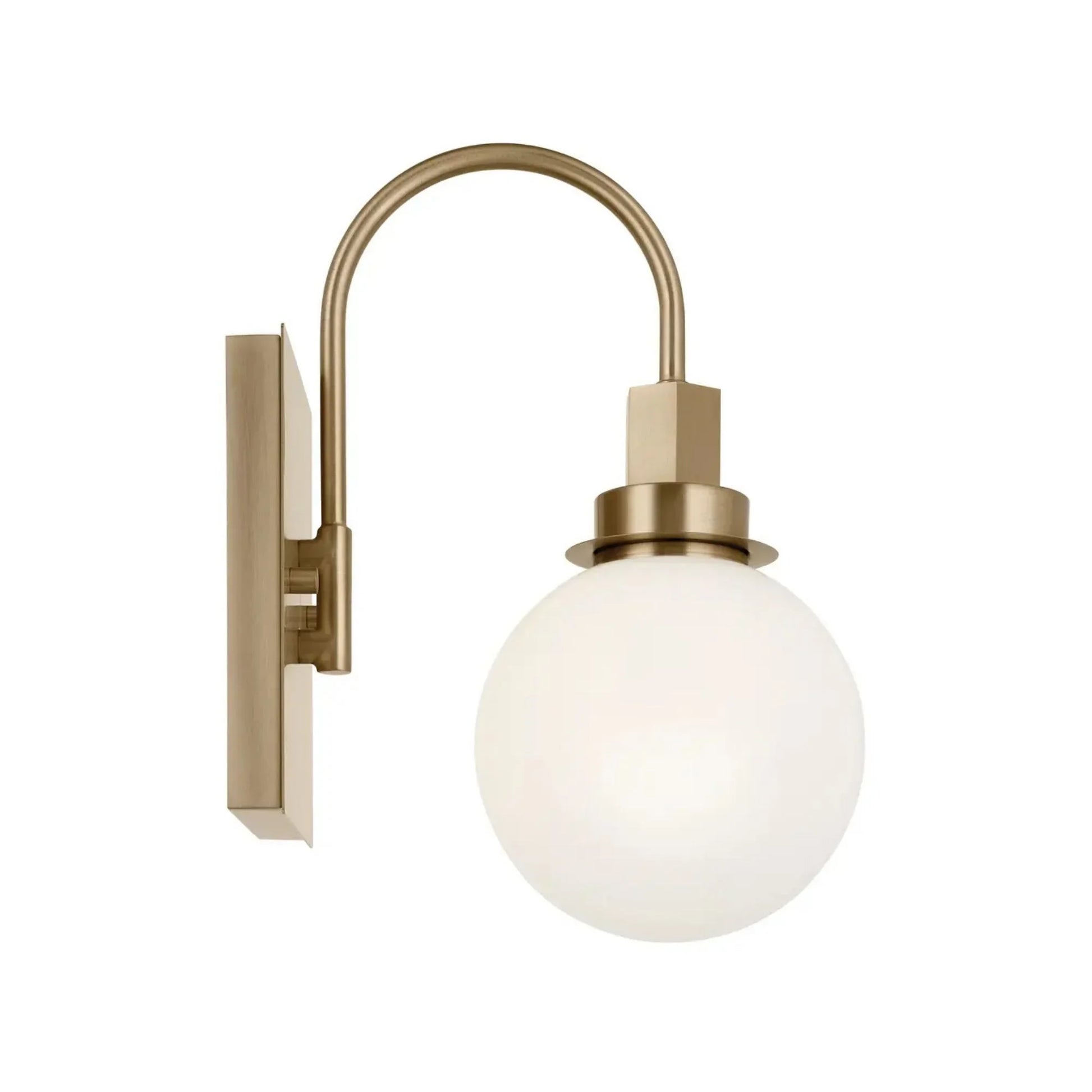 This wall sconce combines a contemporary style with traditional elements, featuring a sleek champagne bronze finish and a softly diffusing opal glass shade. Its damp rating makes it suitable for various indoor environments.