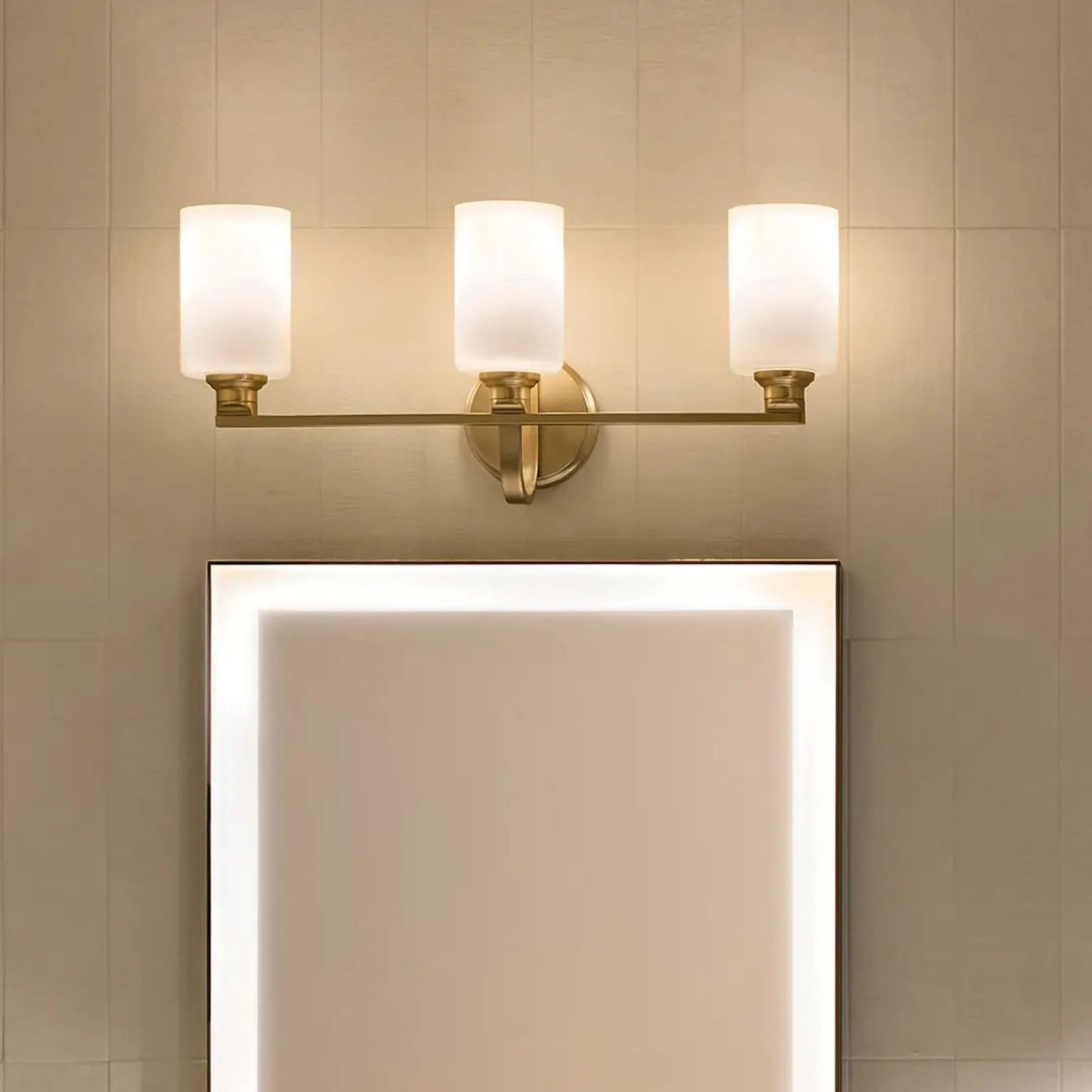 Gioe 24" 3-Light Bath Vanity Light, Champagne Bronze Finish Etched Glass