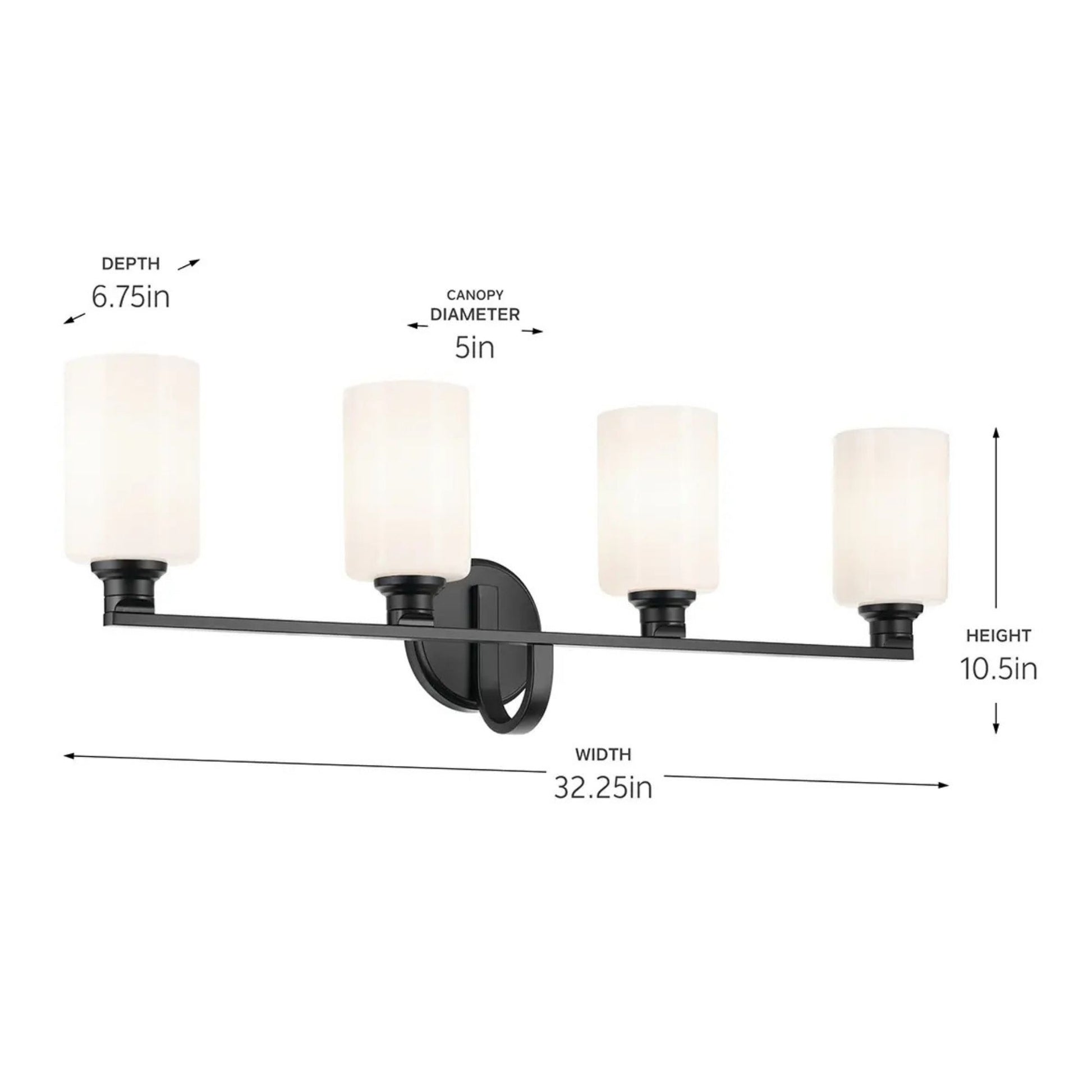 Gioe 32" 4-Light Bath Vanity Light, Black Finish Fluted Glass