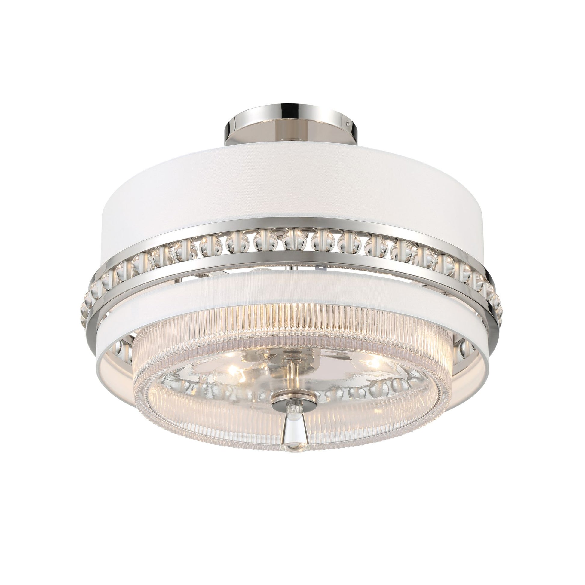 Sutton 18" 3-Light Semi Flush/Pendant, Polished Nickel Finish with White Silk Shade
