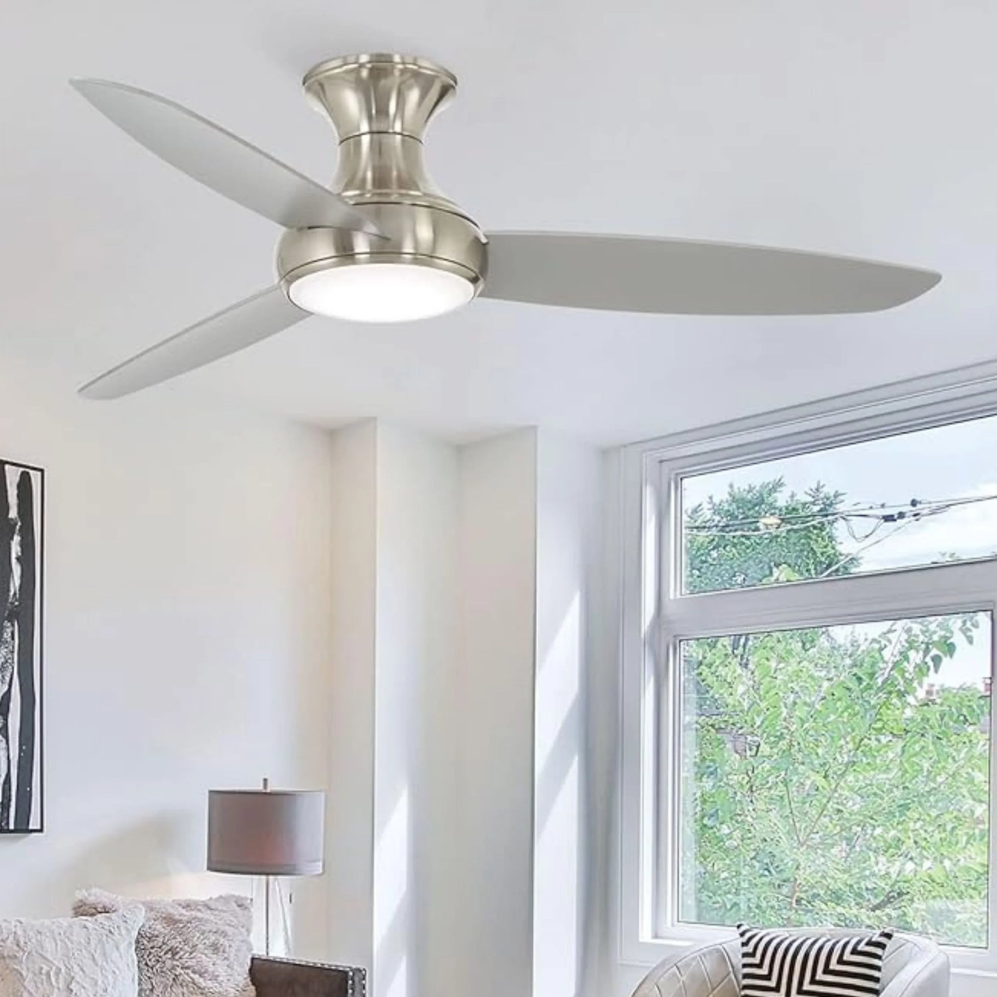 Concept III 54" Nickel Outdoor Hugger LED Smart Ceiling Fan