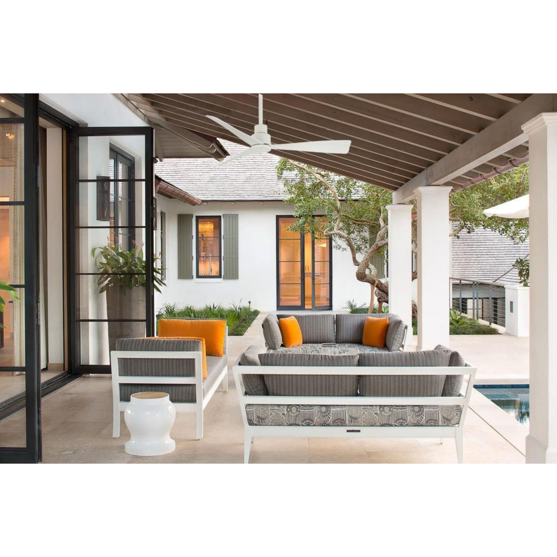 Simple 44" White Wet Rated Ceiling Fan with Remote
