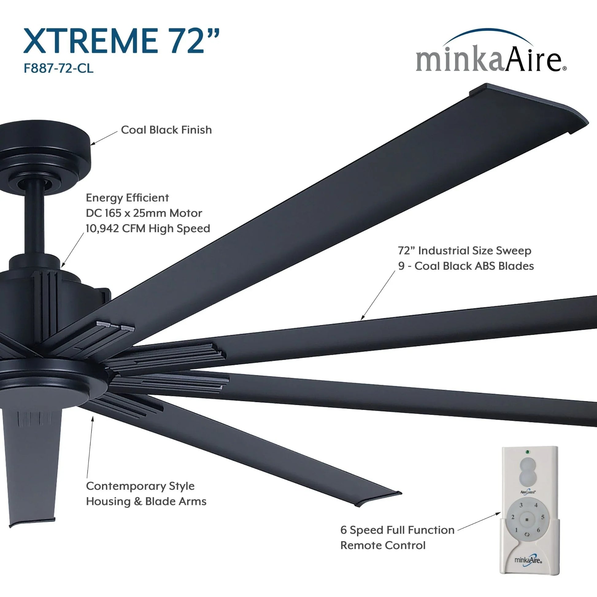Finished in striking coal black from motor housing to blade tips, the Xtreme makes a dramatic architectural statement. The windmill-inspired blade configuration combines form and function, creating visual interest while maximizing airflow dynamics.