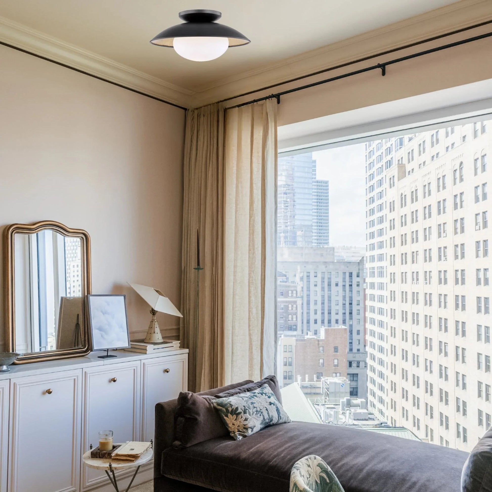 Cadence 14" Semi Flush Mount, Black Lustro/Gold Leaf Finish
