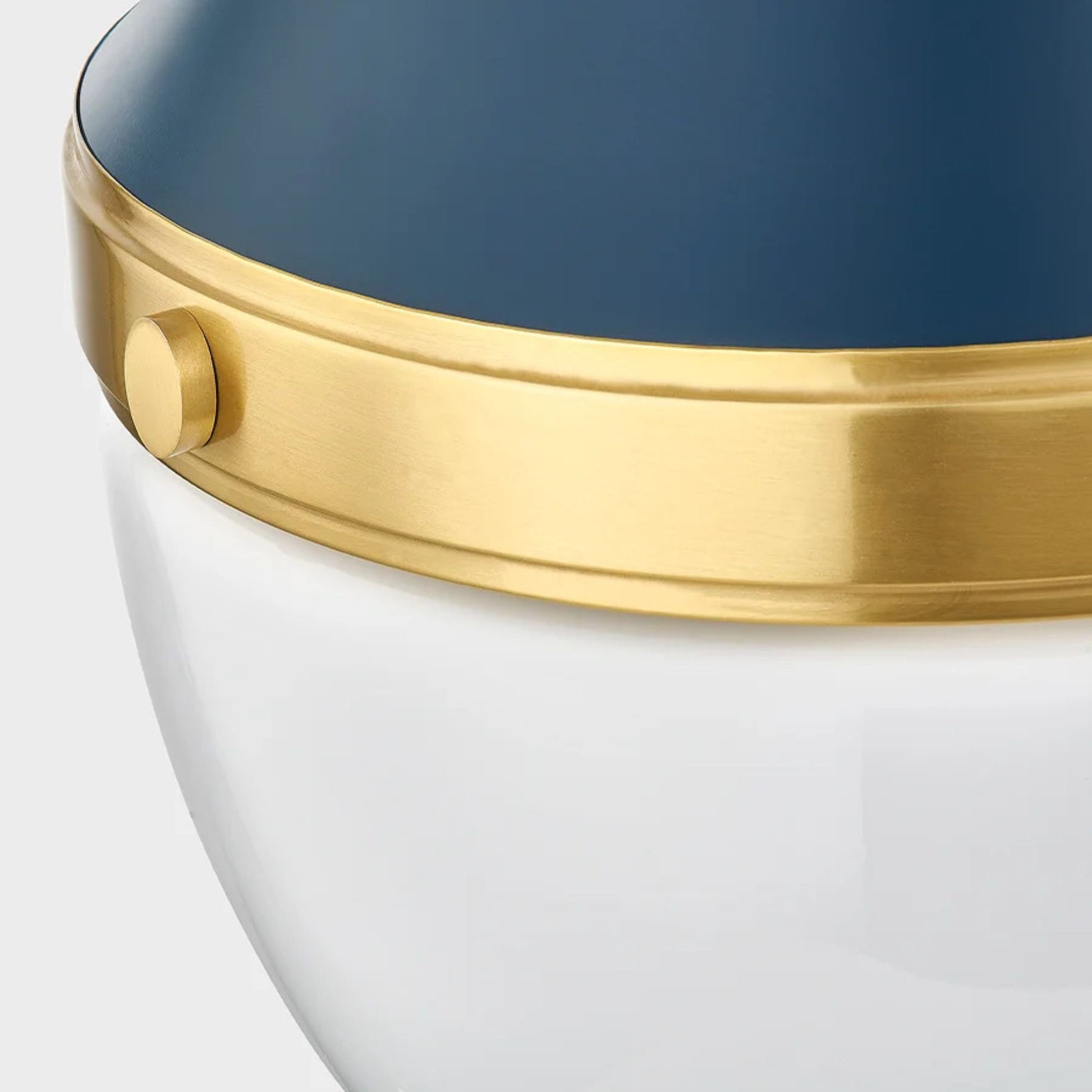 - Refined Contrast: soft navy shade contrasts beautifully with the luminous diffuser and warm aged brass band.