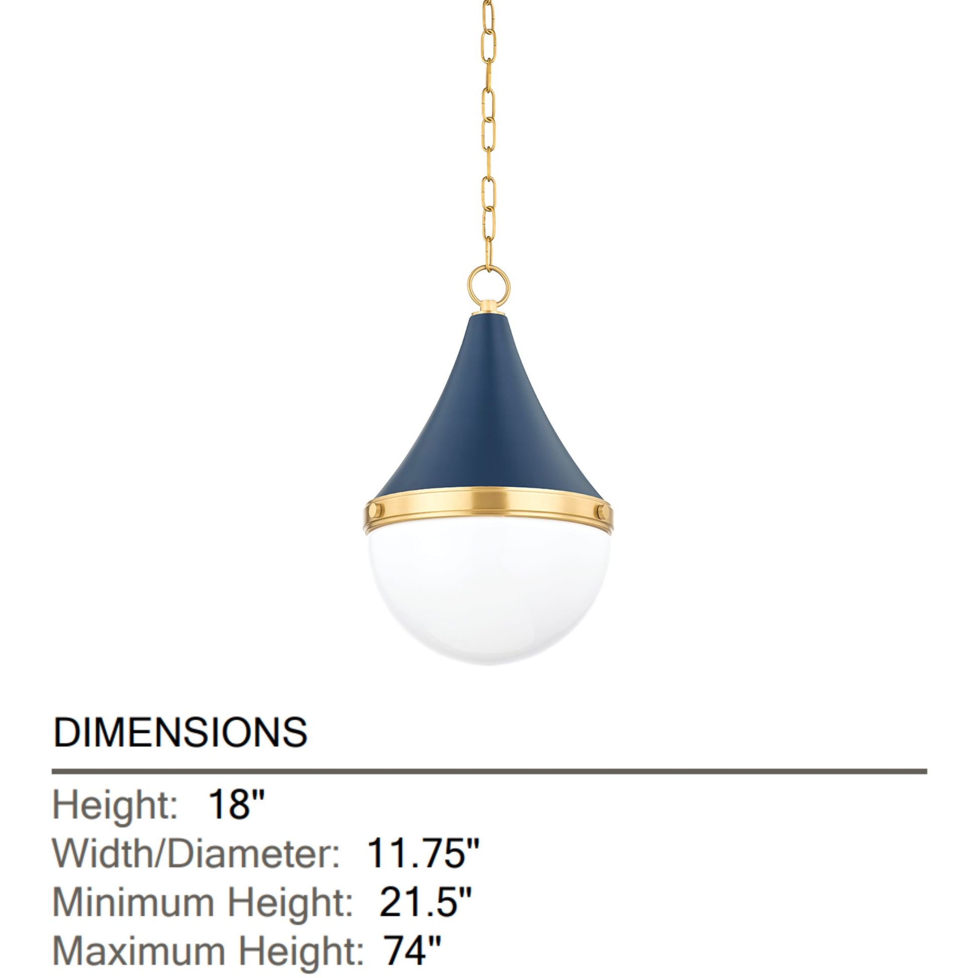 Ciara 18" Pendant, Aged Brass/Soft Navy Finish