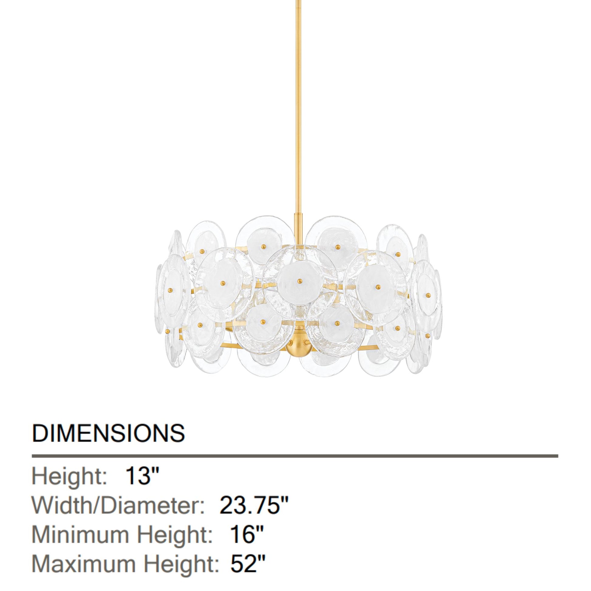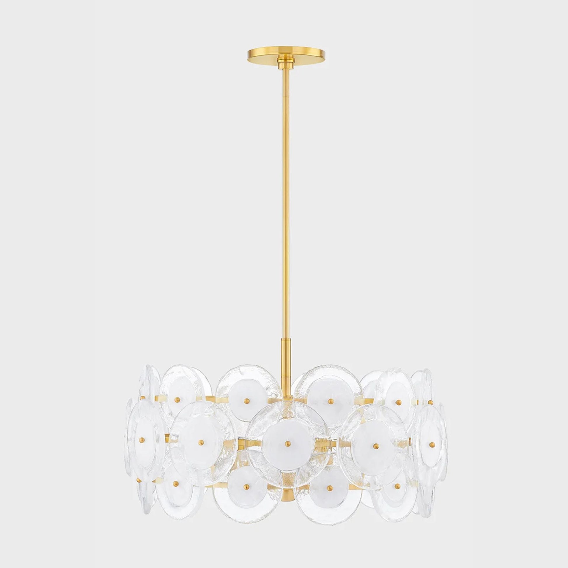 - Layered Discs: Dazzling design features discs of clear cast glass layered in tiers.