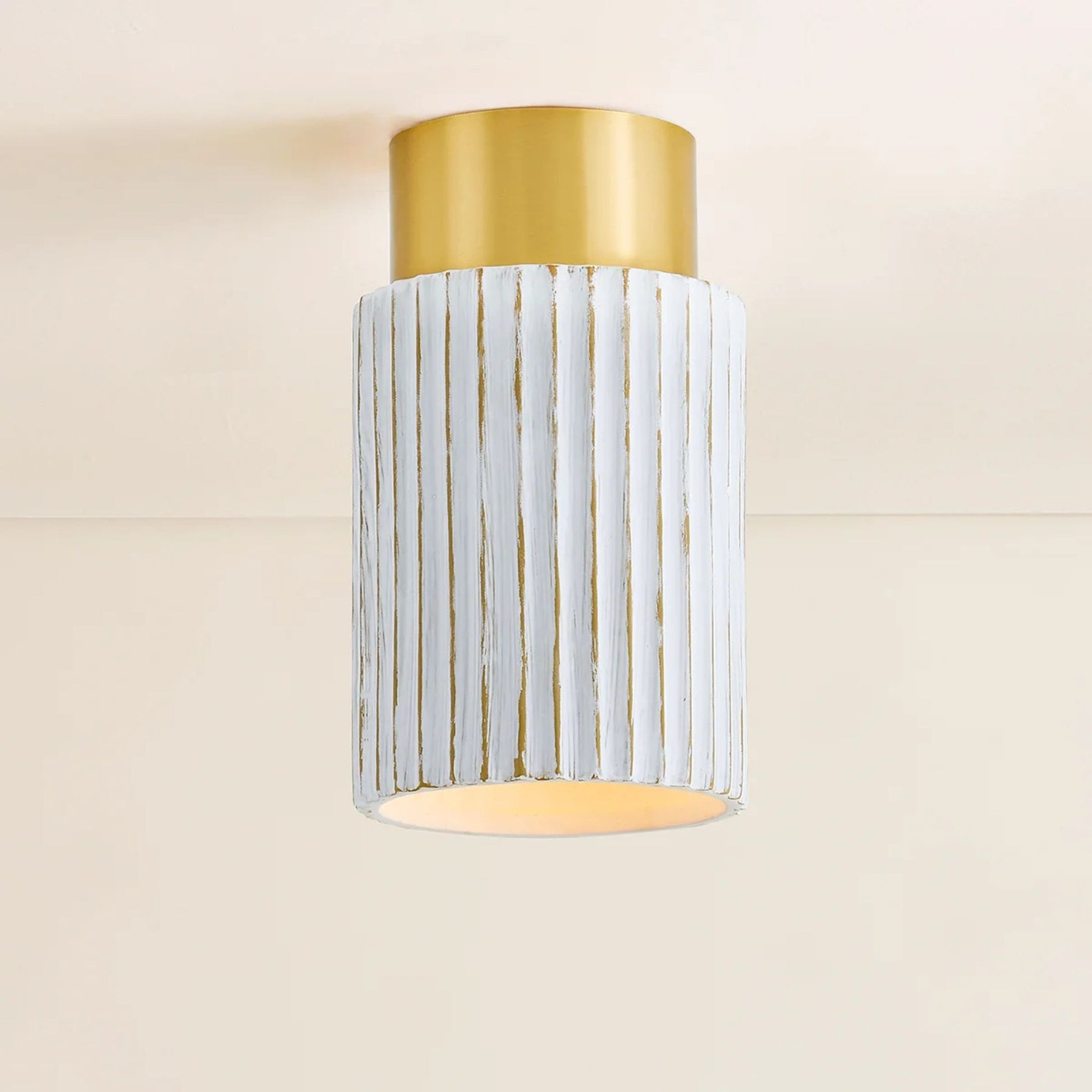 Corissa 32" Flush Mount, Aged Brass/Ceramic Whitewash Bisque Finish