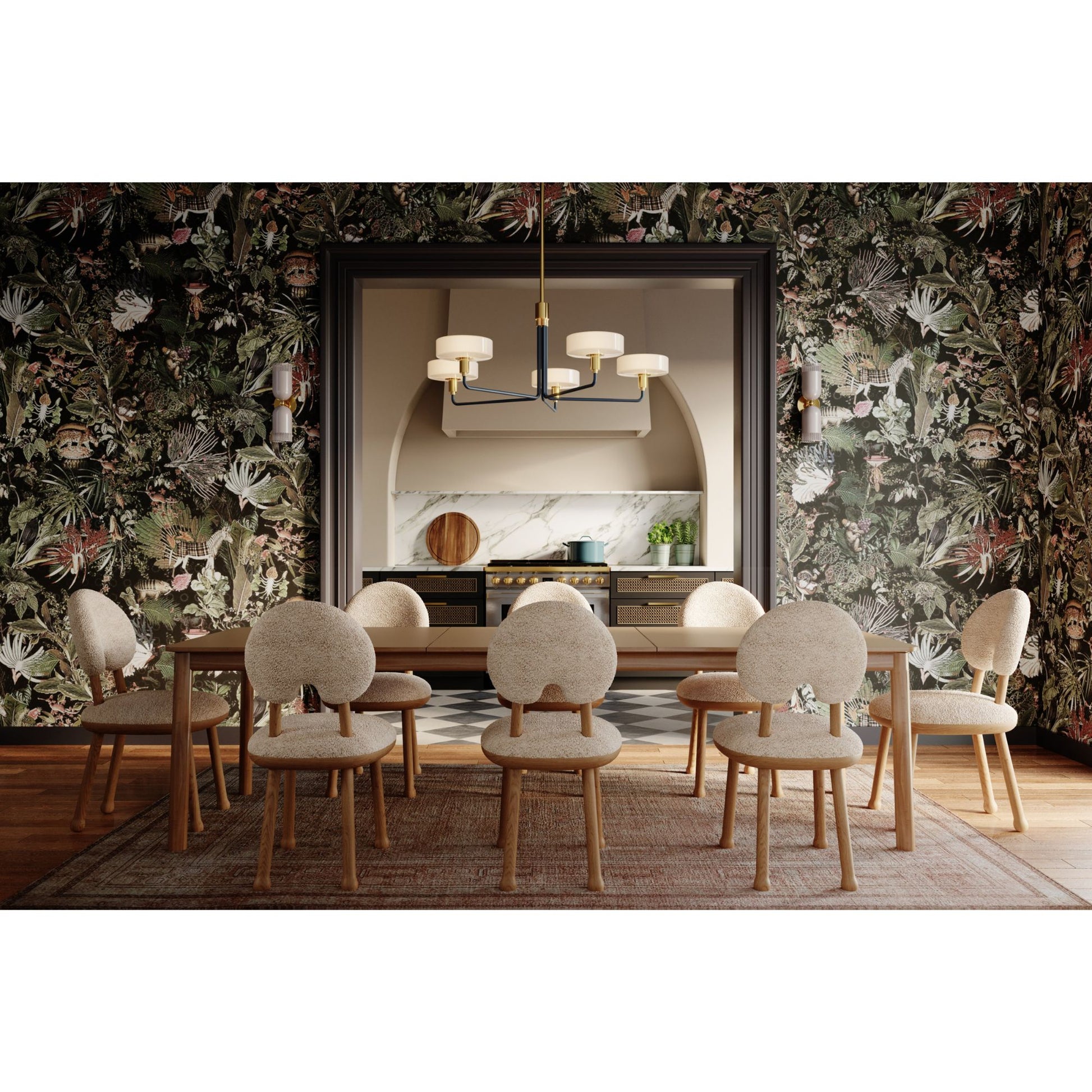 - Contrasting Accents: Sleek lines and right angles are highlighted by warm aged brass details.