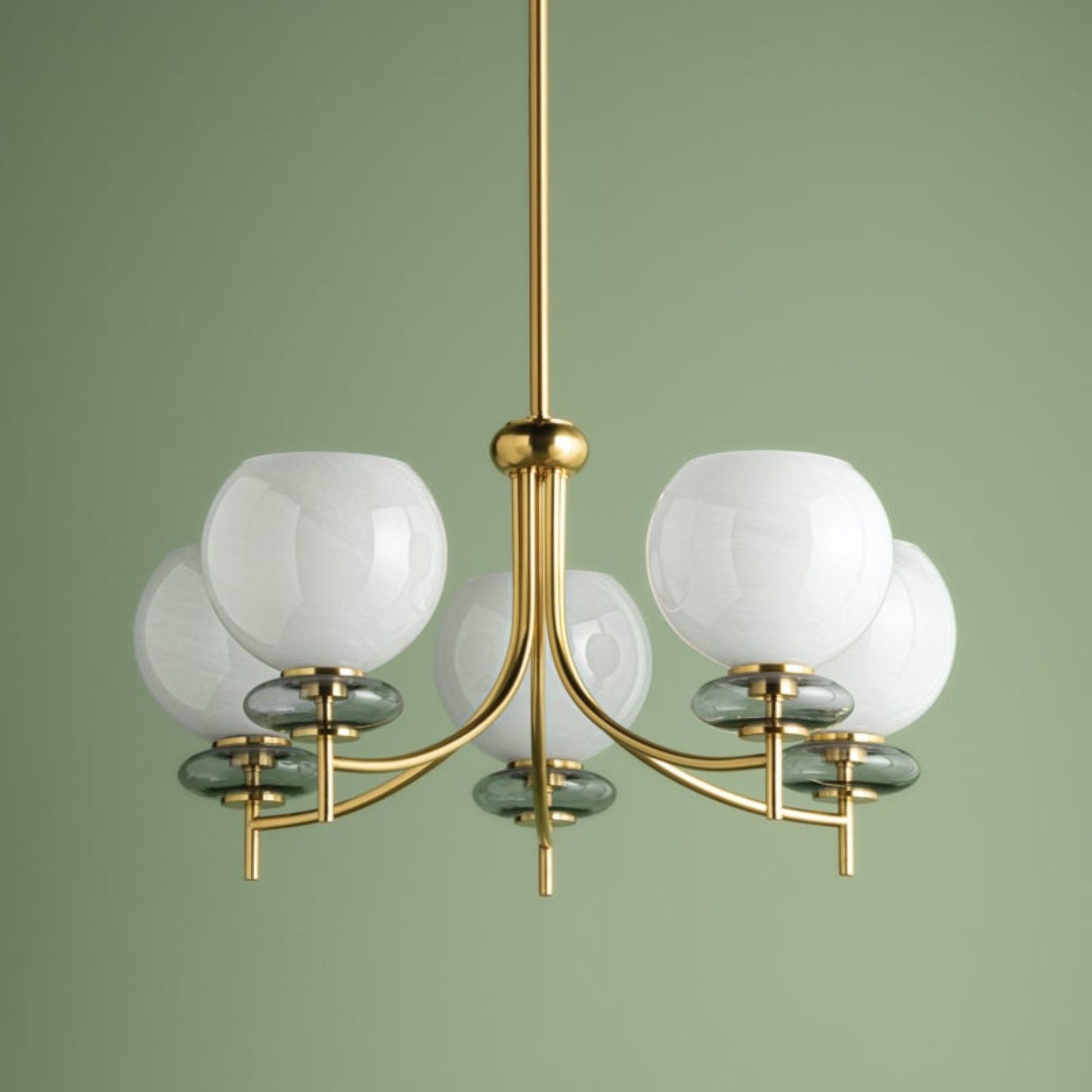 - Delicate Accent: Lustrous aged brass metalwork appears to string the glass forms like beads.