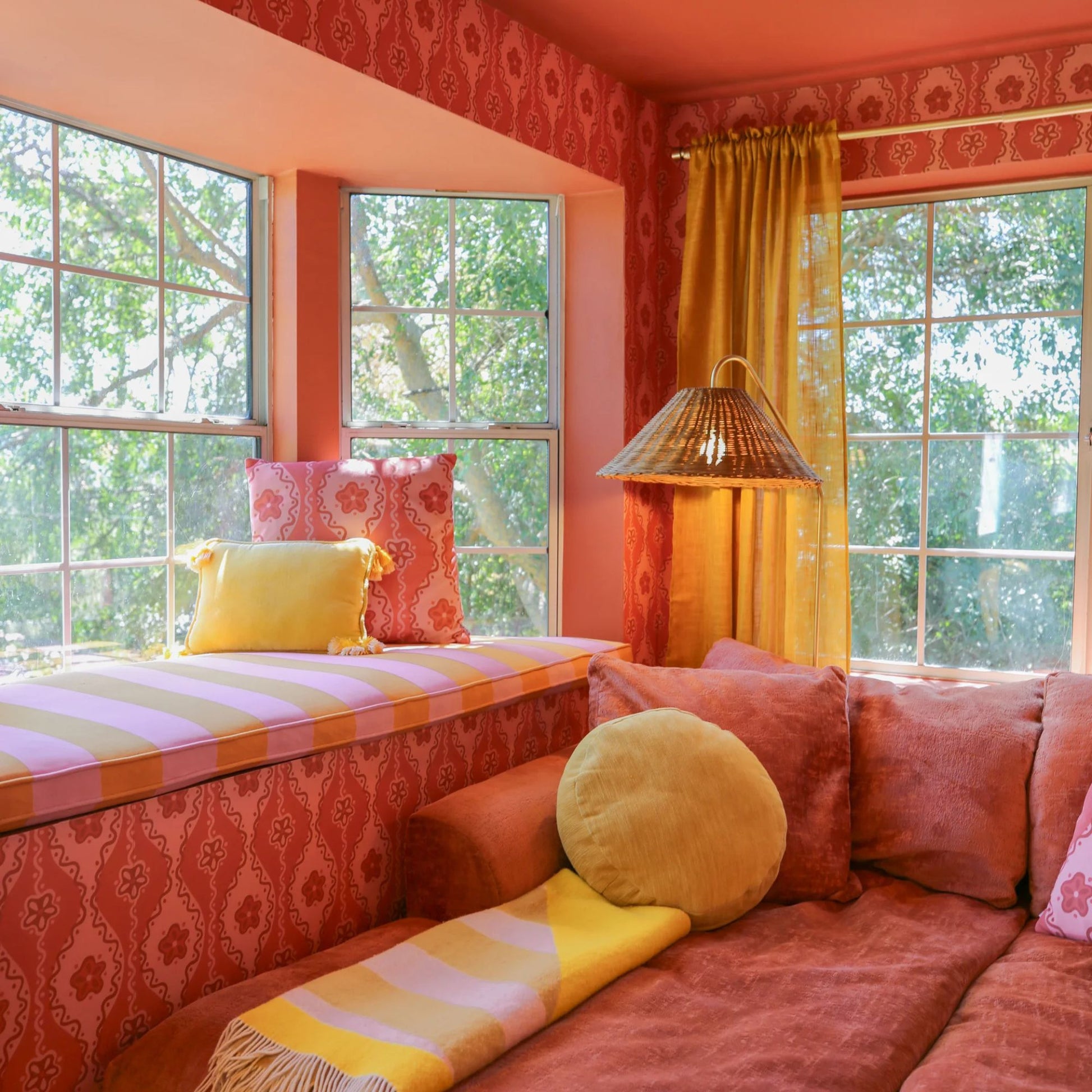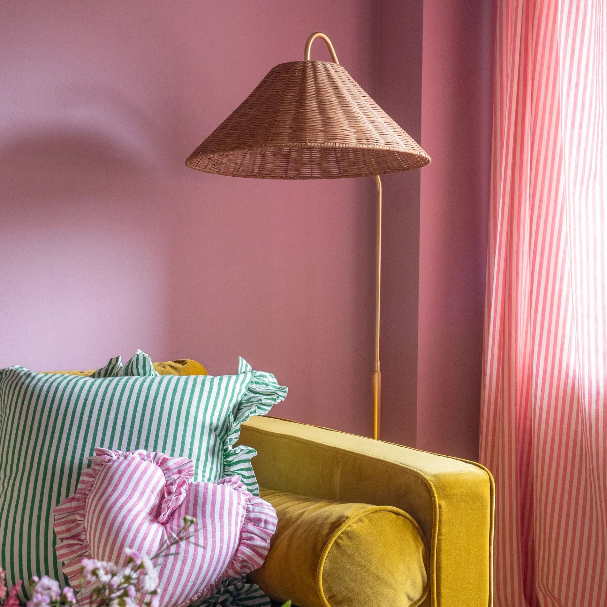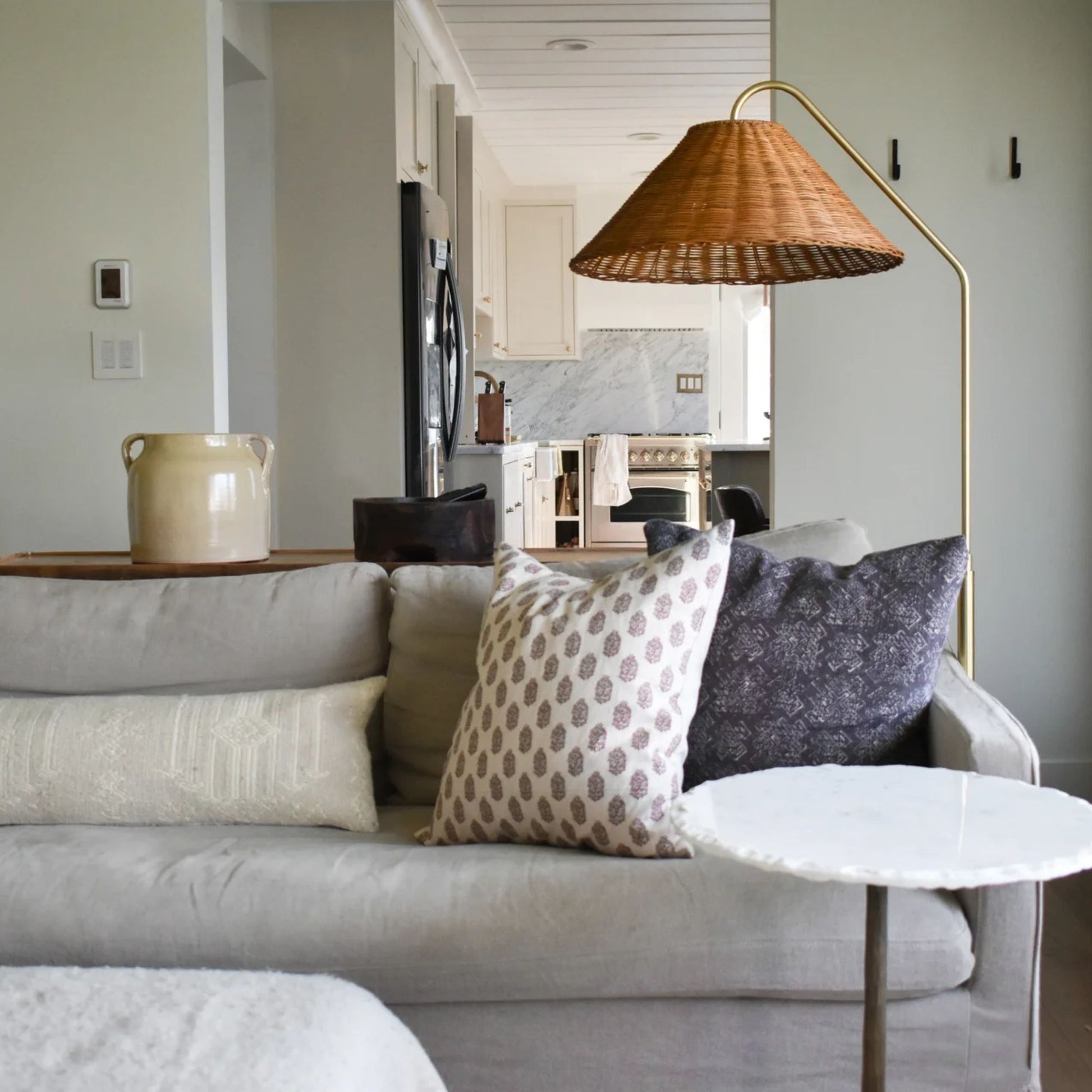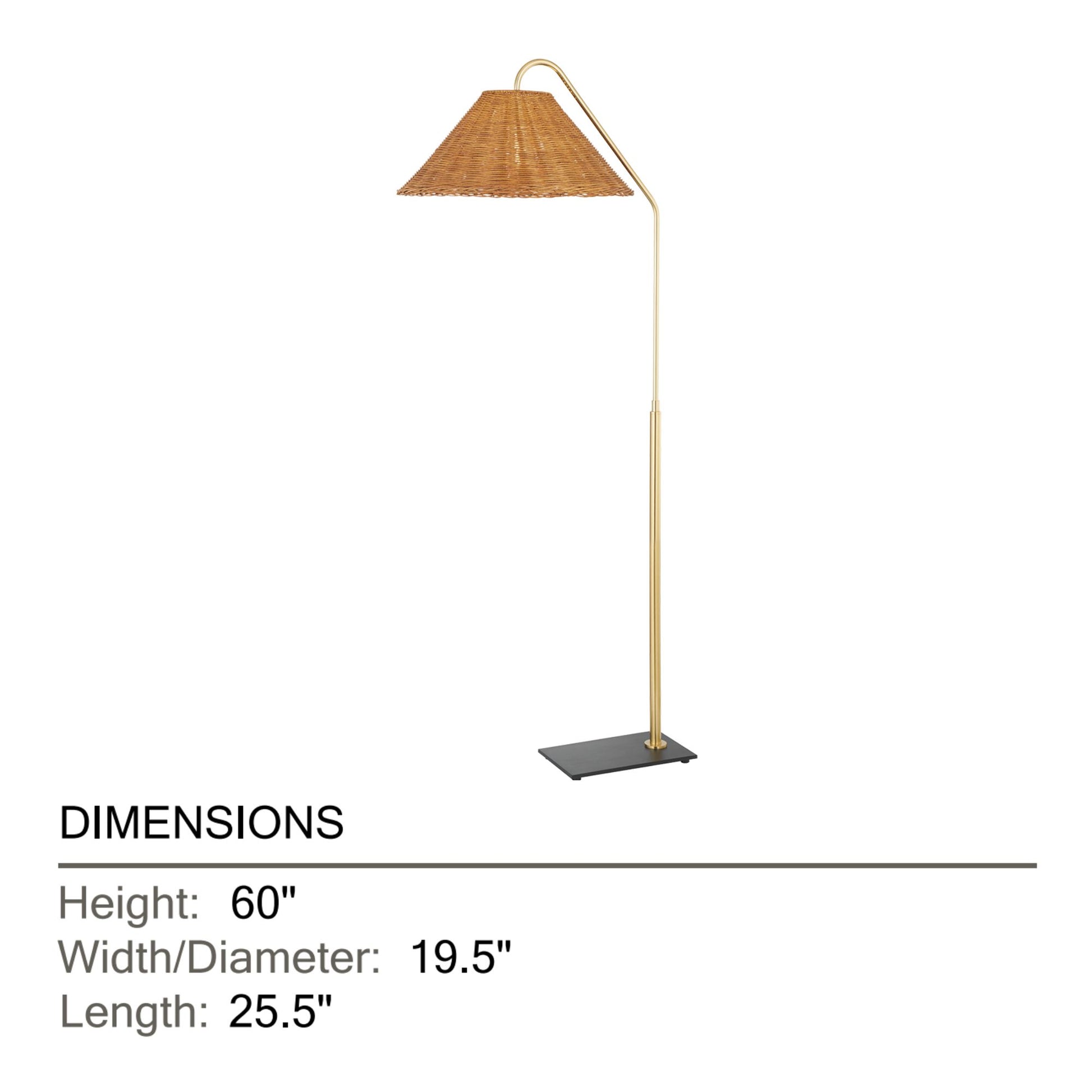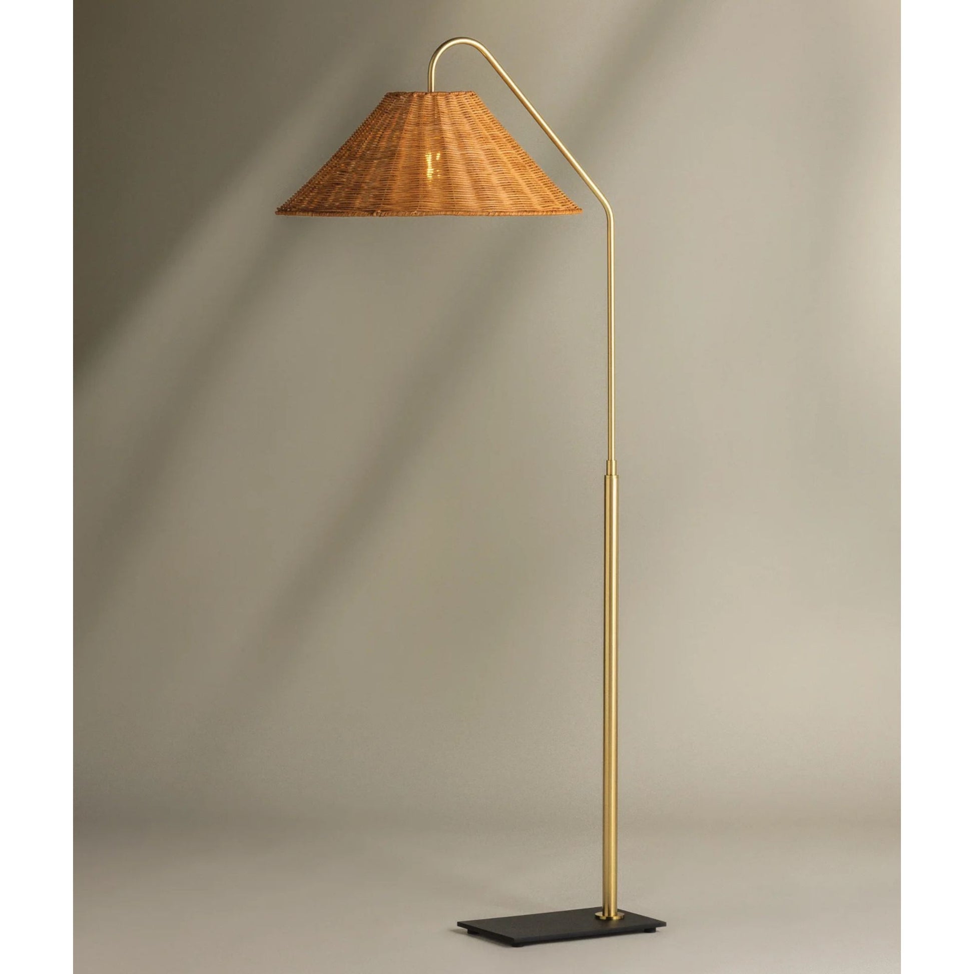 Lauren Floor Lamp Textured Black Combo & Aged Brass with Rattan Finish