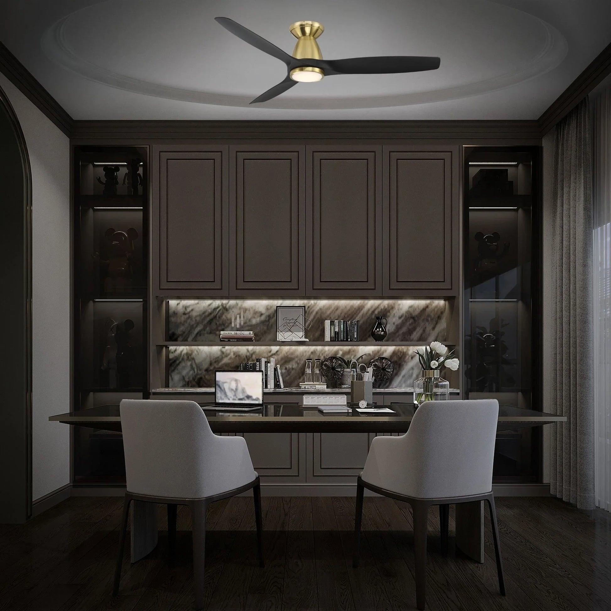 Skylark Flush 54" Brass & Black LED Smart Ceiling Fan