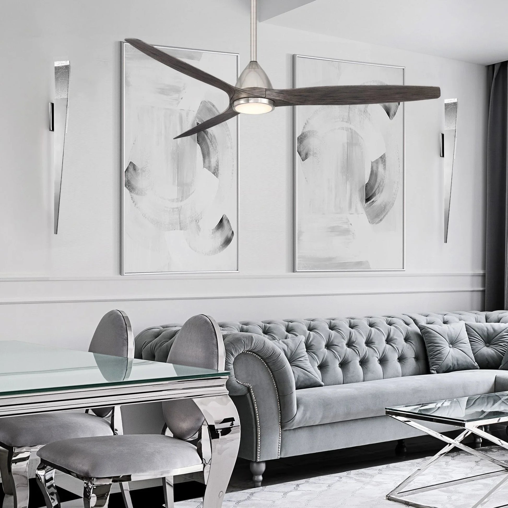 - Brushed Nickel & Ebony: Combines a Brushed Nickel body with Ebony ABS blades for a sophisticated, high-contrast modern look.