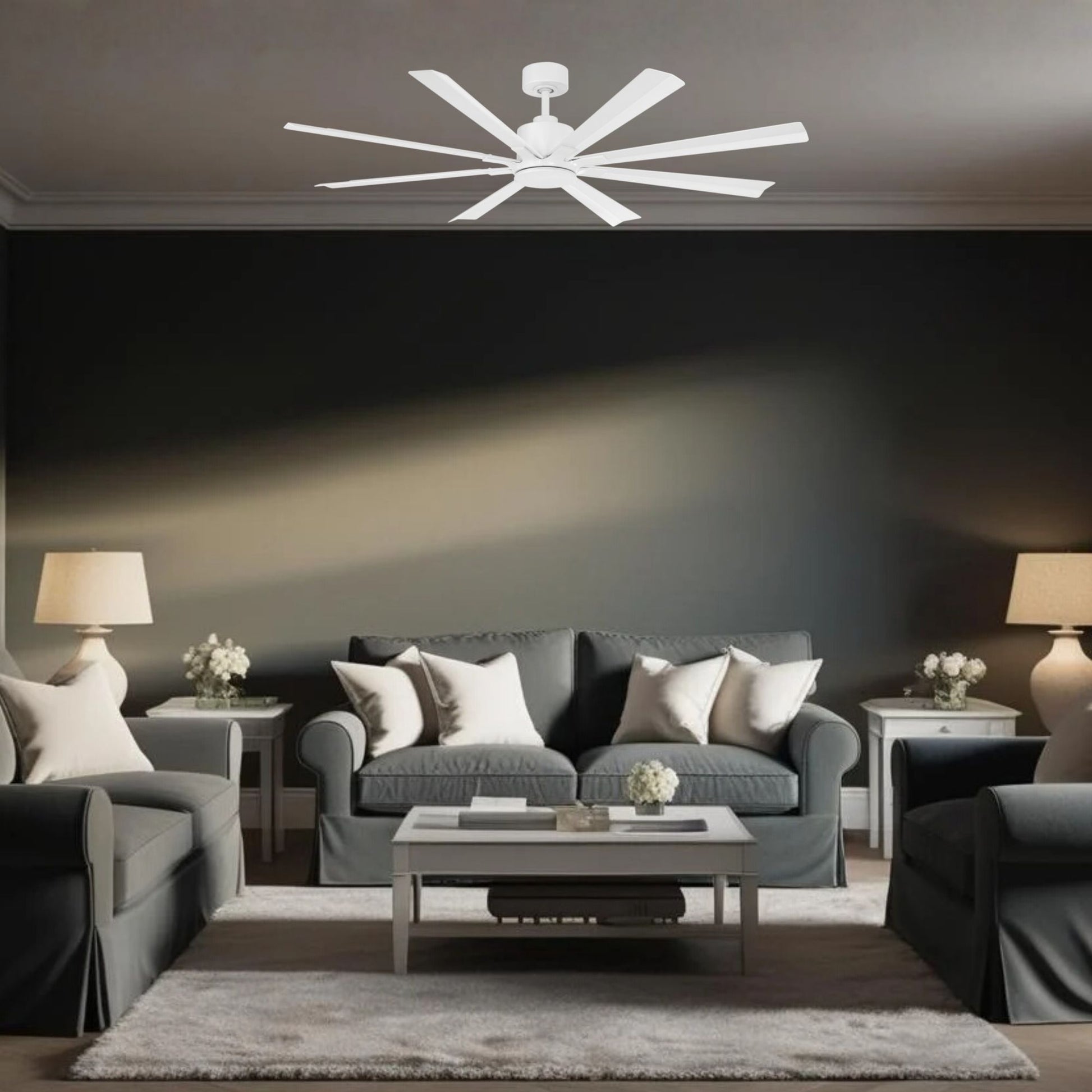 - Grand White Profile: Expansive 8-blade Matte White design without a light kit, ideal for spaces with existing recessed lighting.