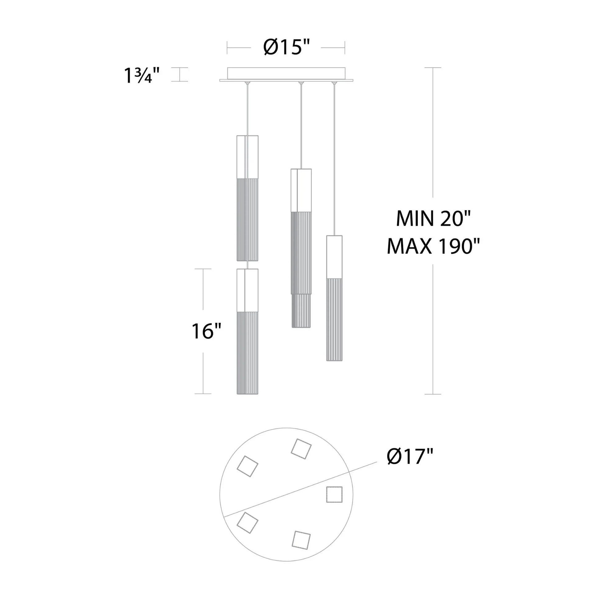 Cinema 17" 5 Lights LED Pendant Light, Selectable CCT, Black Finish