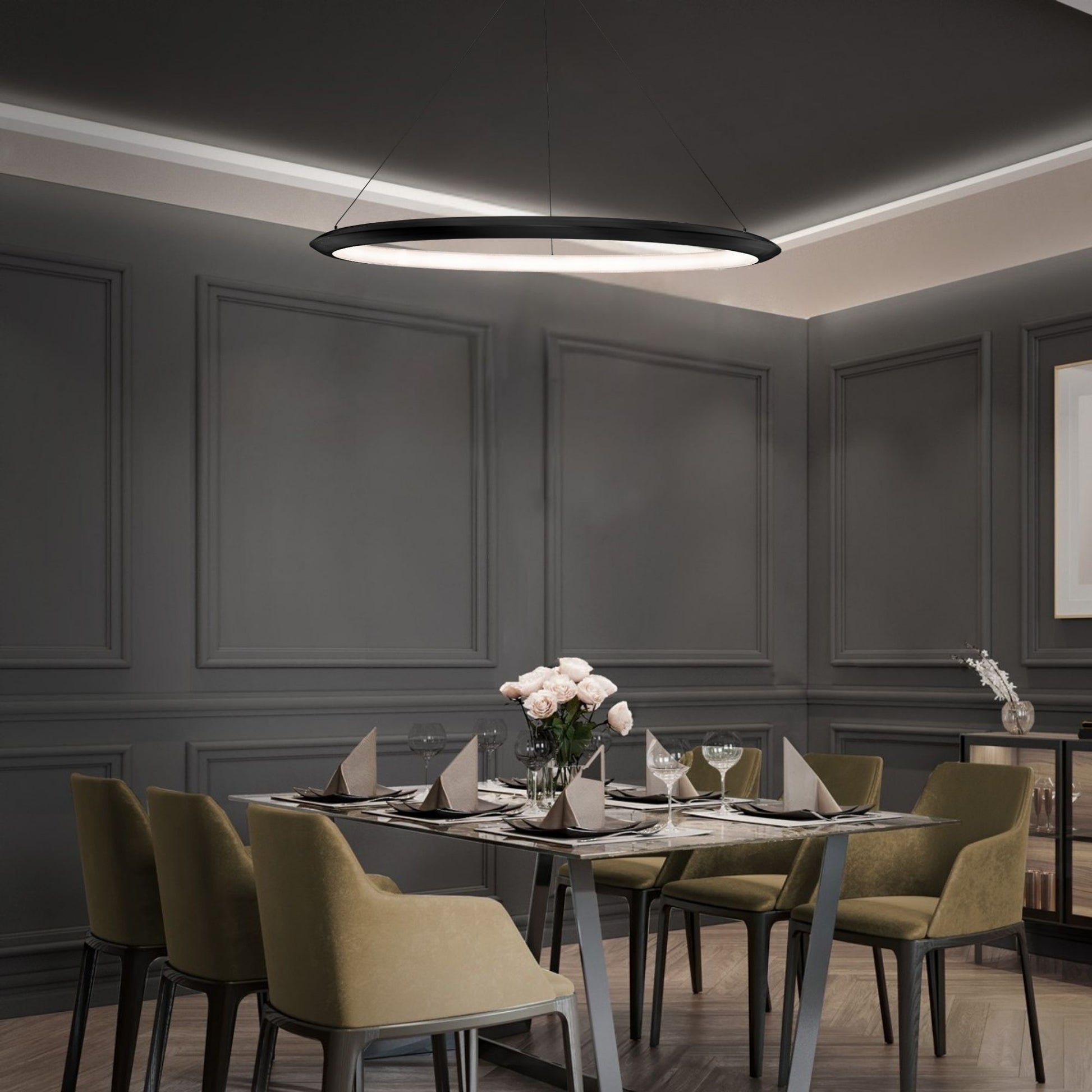 The Ring 48" LED Pendant, 3000K, Black Finish