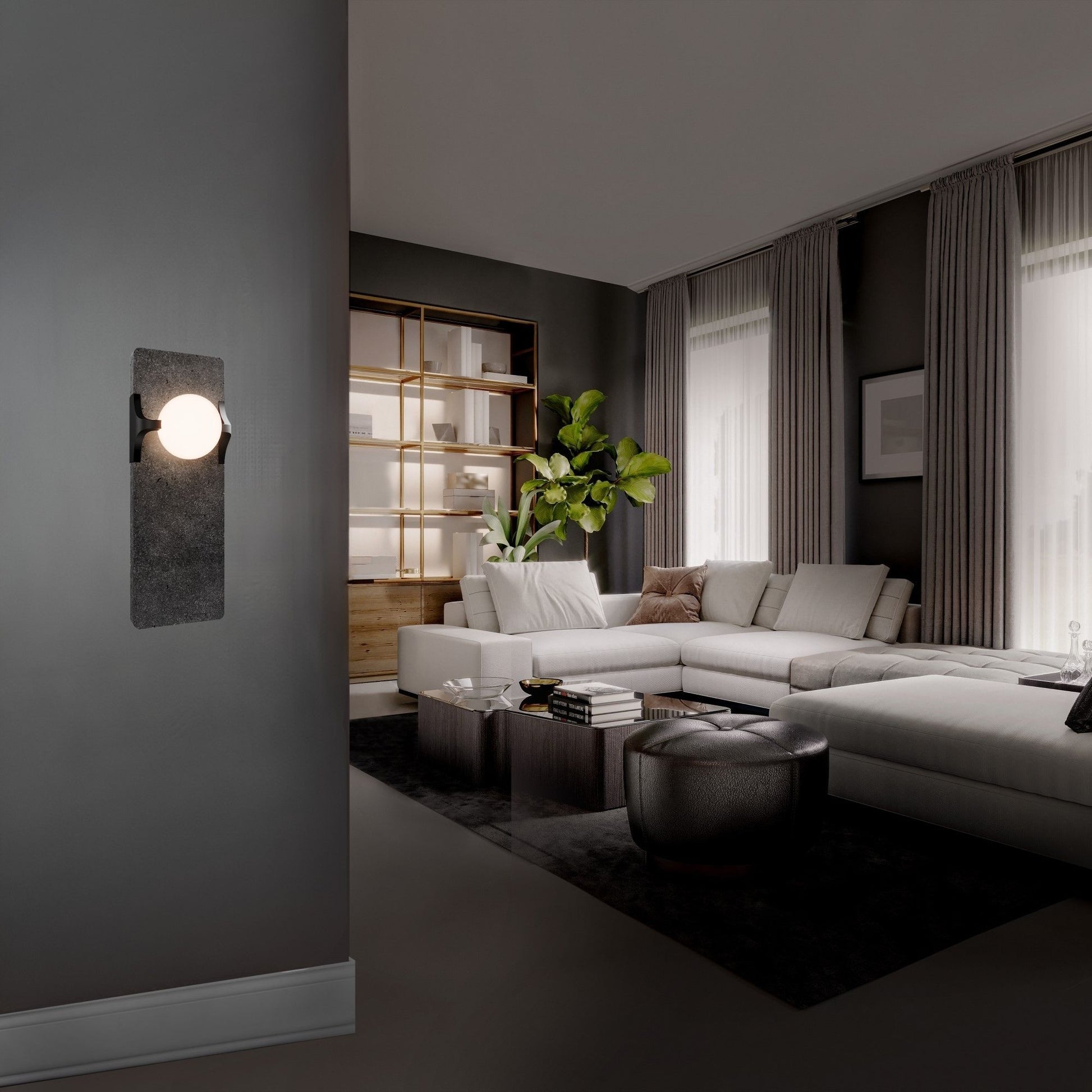 With its tactile stone presence and refined 14-inch scale, the Okemo sconce is an ideal choice for luxury suites, entryways, or as a sophisticated accent in modern living rooms. Its blend of Basalt stone and opal glass transcends trends, offering a timeless aesthetic that stays deeply connected to the spaces it inhabits.