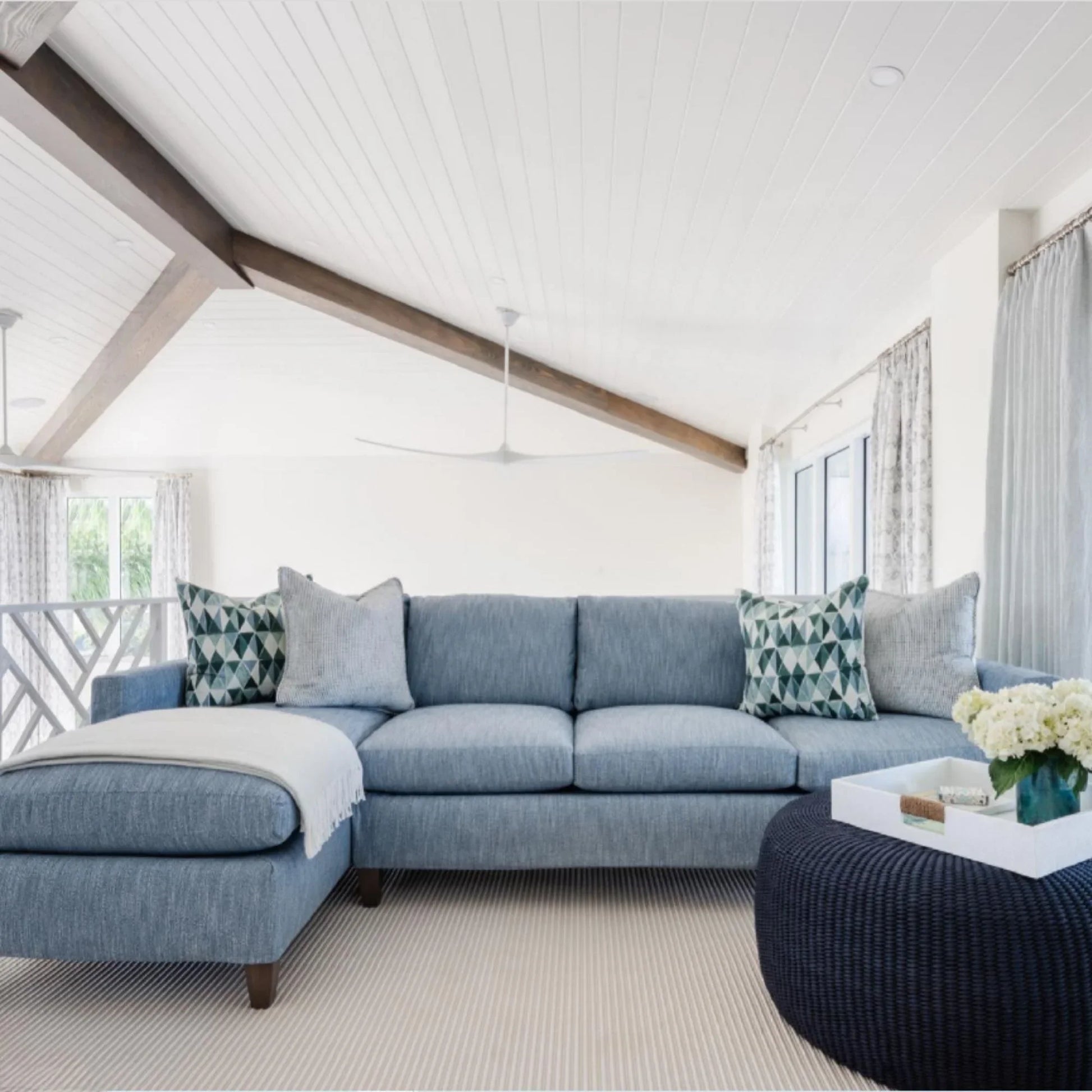 - Sloped ceiling compatible with downrod mount for versatile installation options
