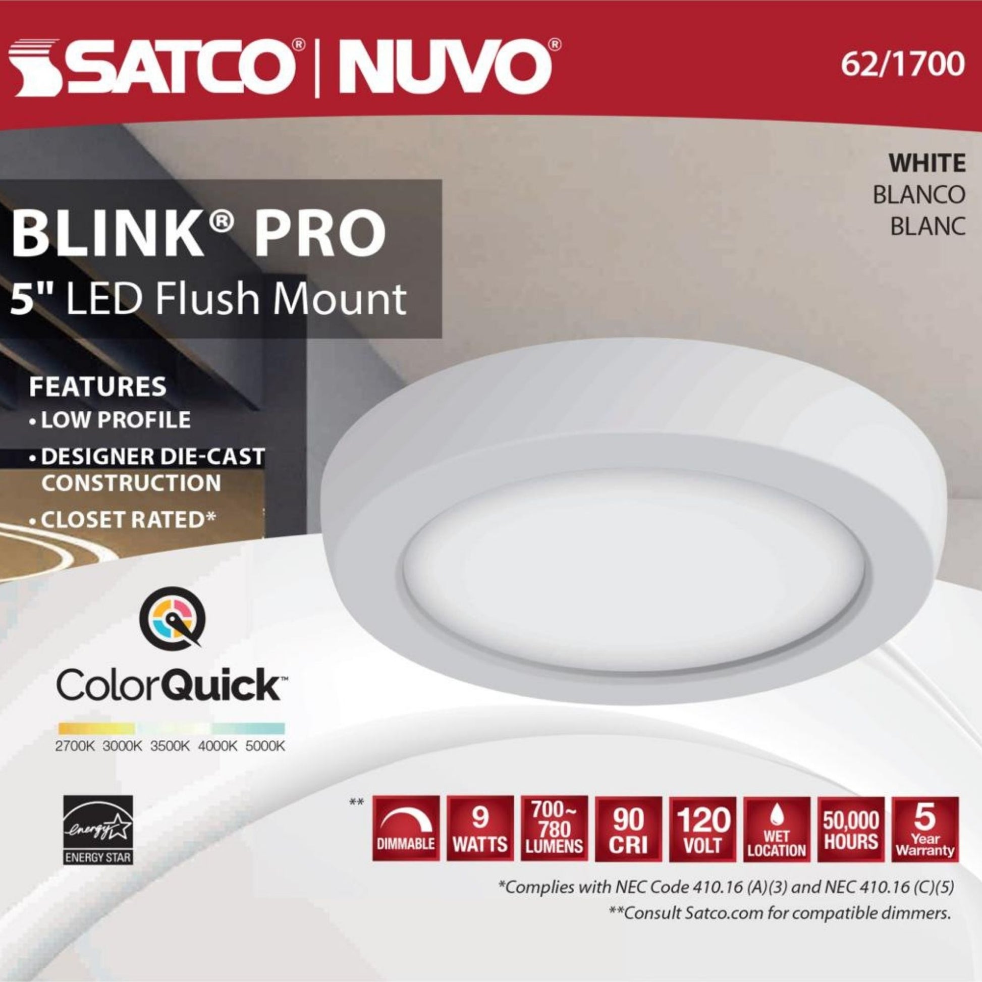 Blink 5" LED Round Disk Light, 9W, 5CCT, White Finish